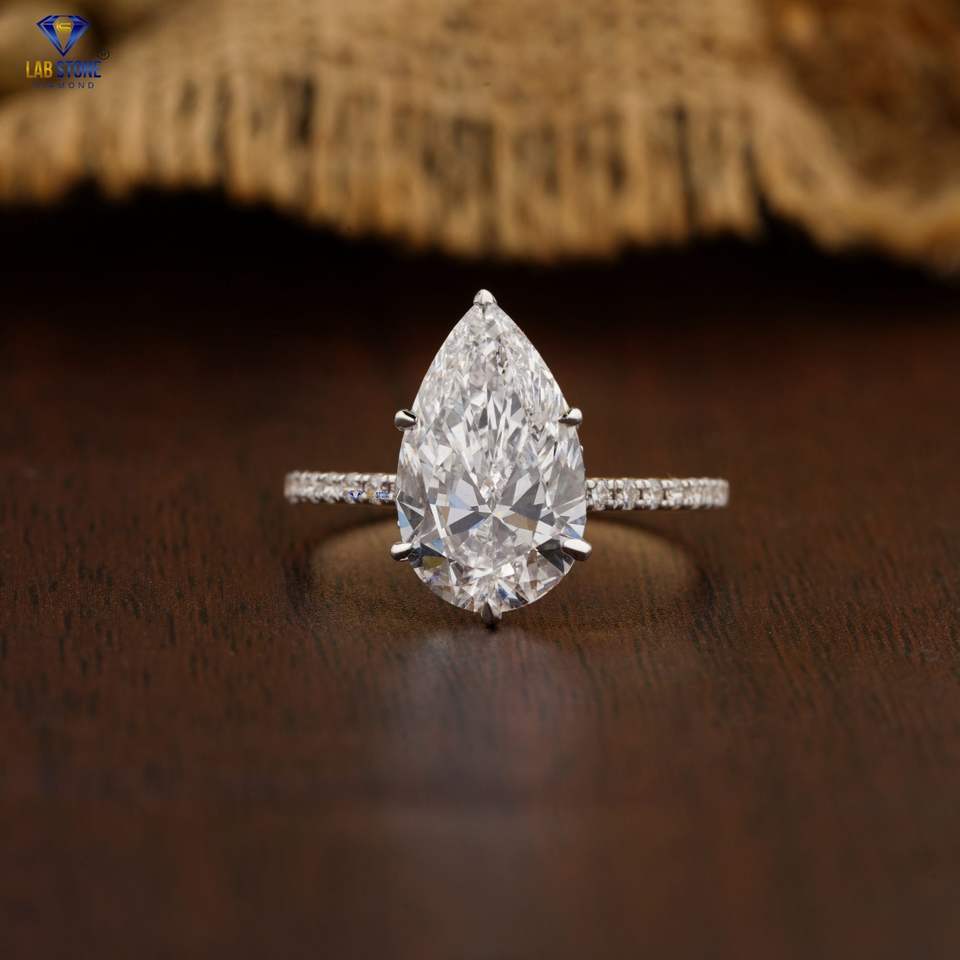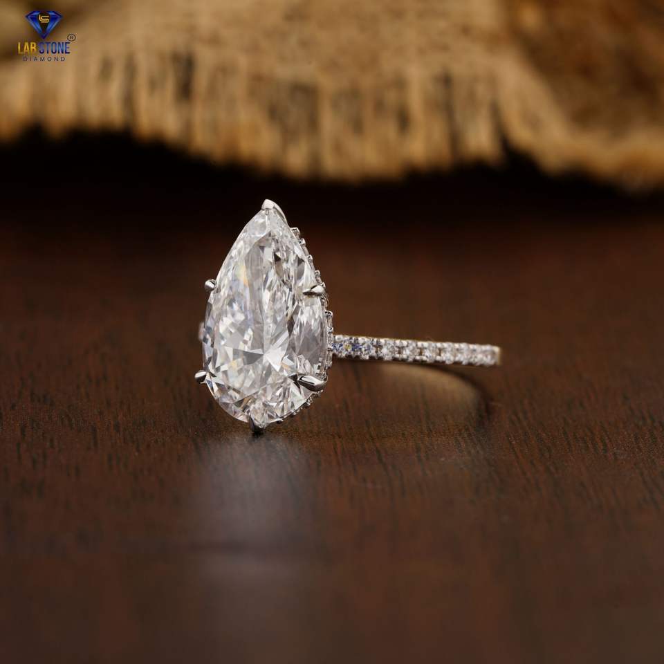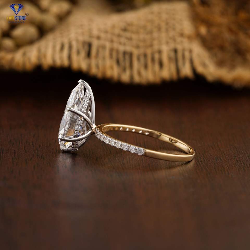 3.66 TDW แหวนเพชรลูกแพร์และกลมตัดทอง18K สีเหลืองซ่อนรัศมีเพชร cvd/hpht เครื่องประดับหินห้องปฏิบัติการ