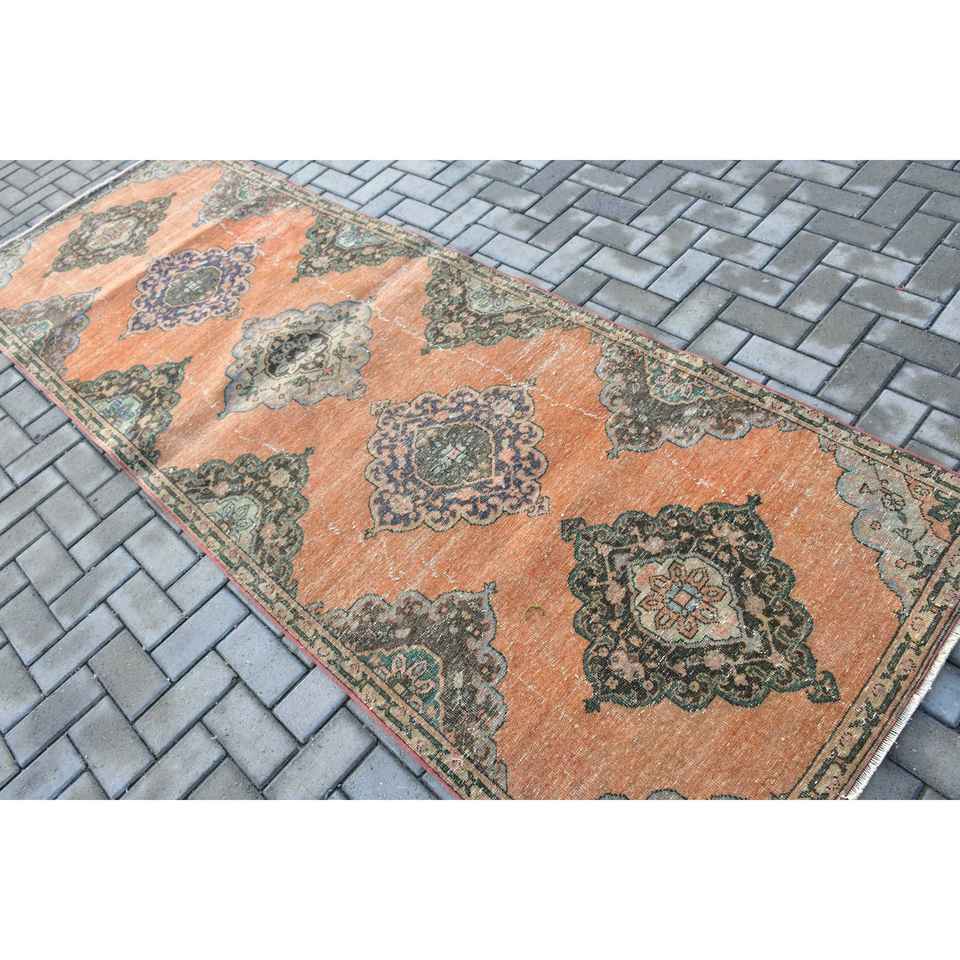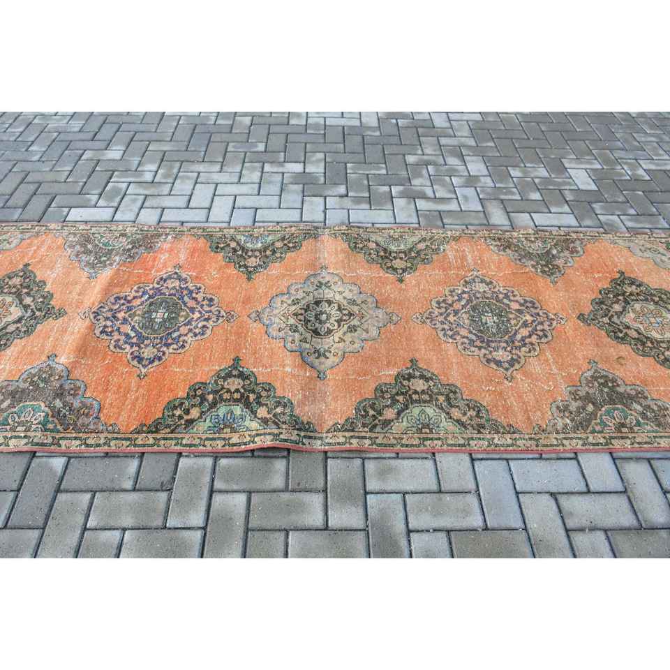 พรมวินเทจขนาด 3.6x10.2 ฟุต, พรมตุรกีแบบ Runner, พรมลายดอกไม้สีส้ม