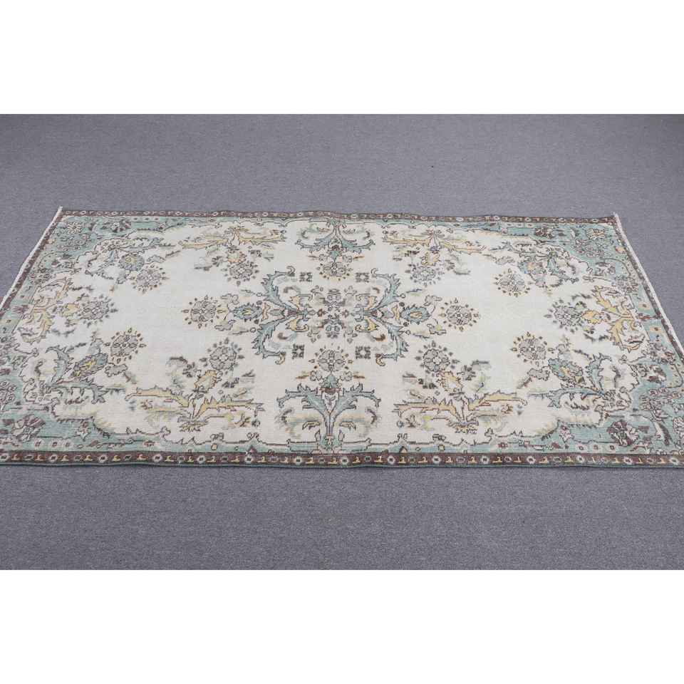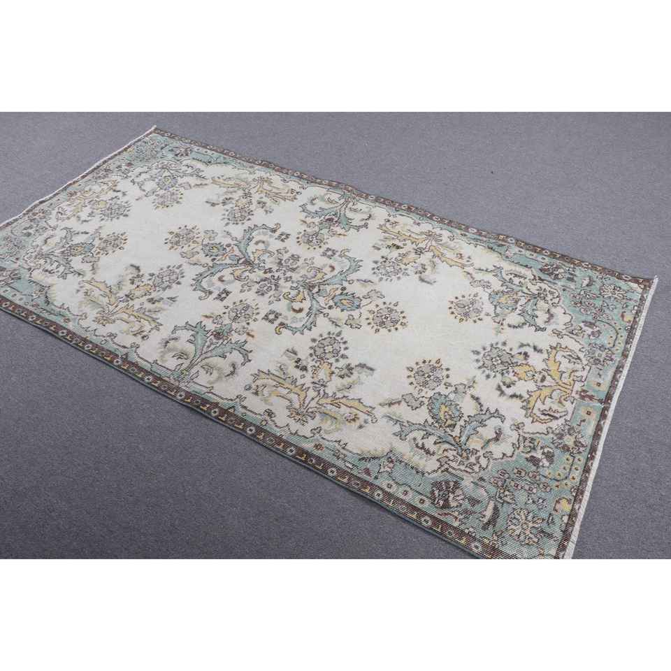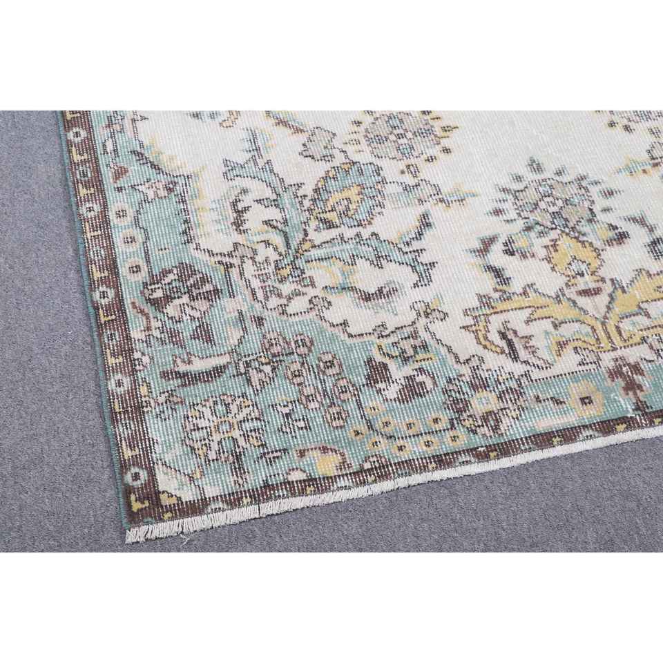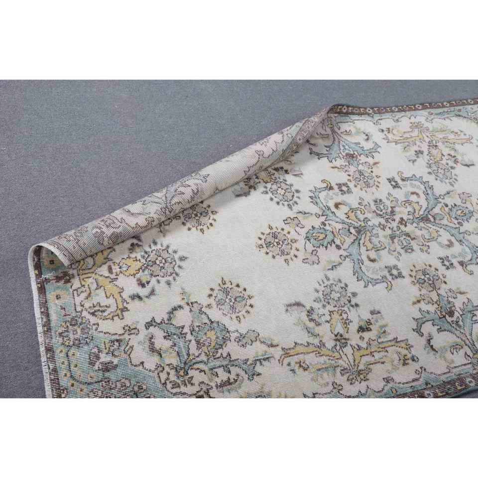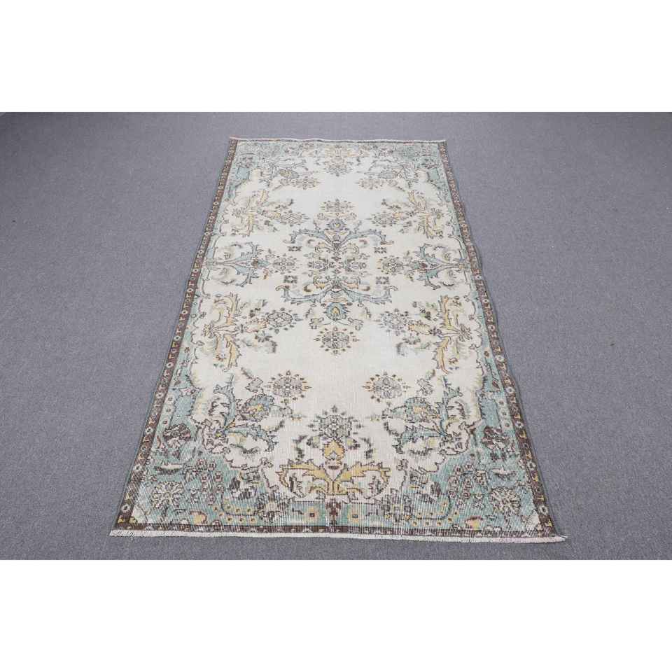 พรมตุรกีขนาด 3.6x7.2 ฟุต พรมวินเทจ ลายต้นไม้และพืชสีน้ำเงินขาว พรมขนสัตว์