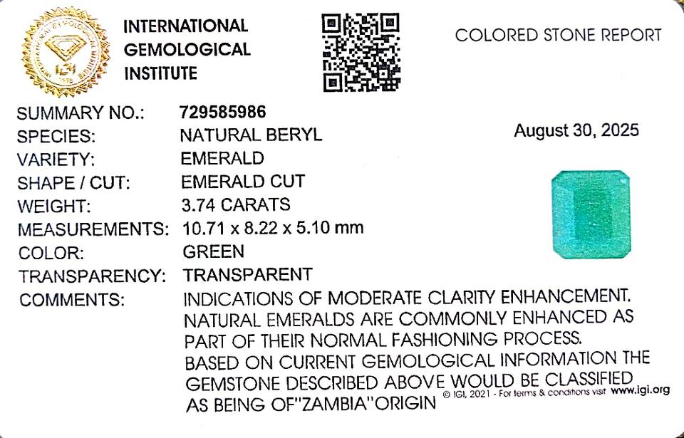 มรกตสีเขียวทรงแปดเหลี่ยม 3.74 กะรัต จากแซมเบีย พลอยหลวม