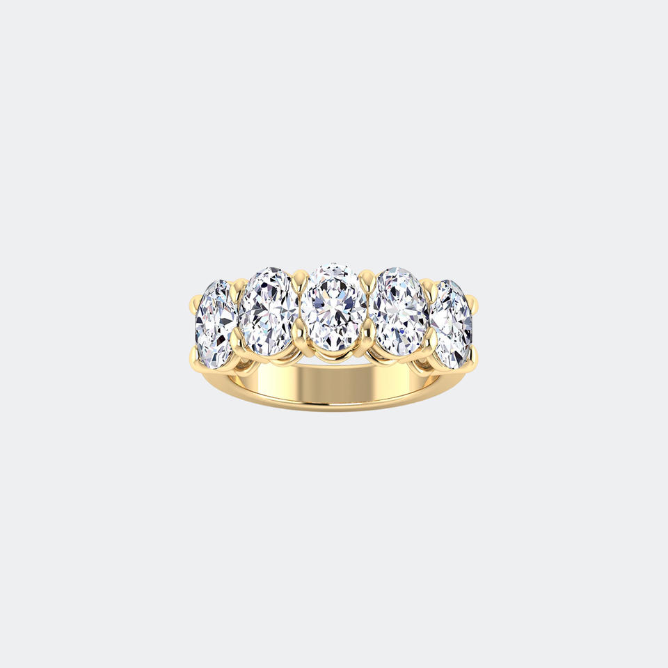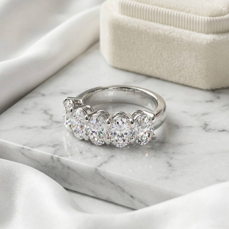 แหวนวงแหวนห้าเม็ดทรงวงรี 3.75 กะรัต ประดับเพชรแบบหนามเตย
