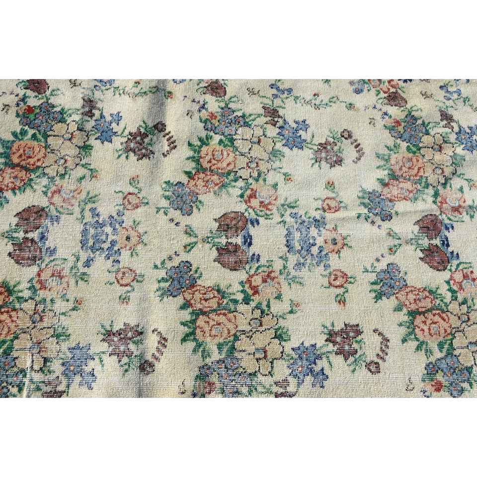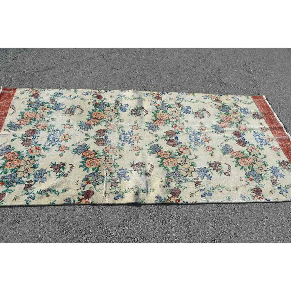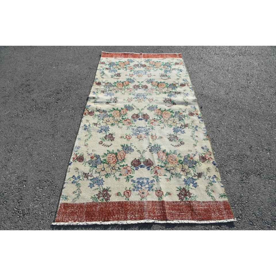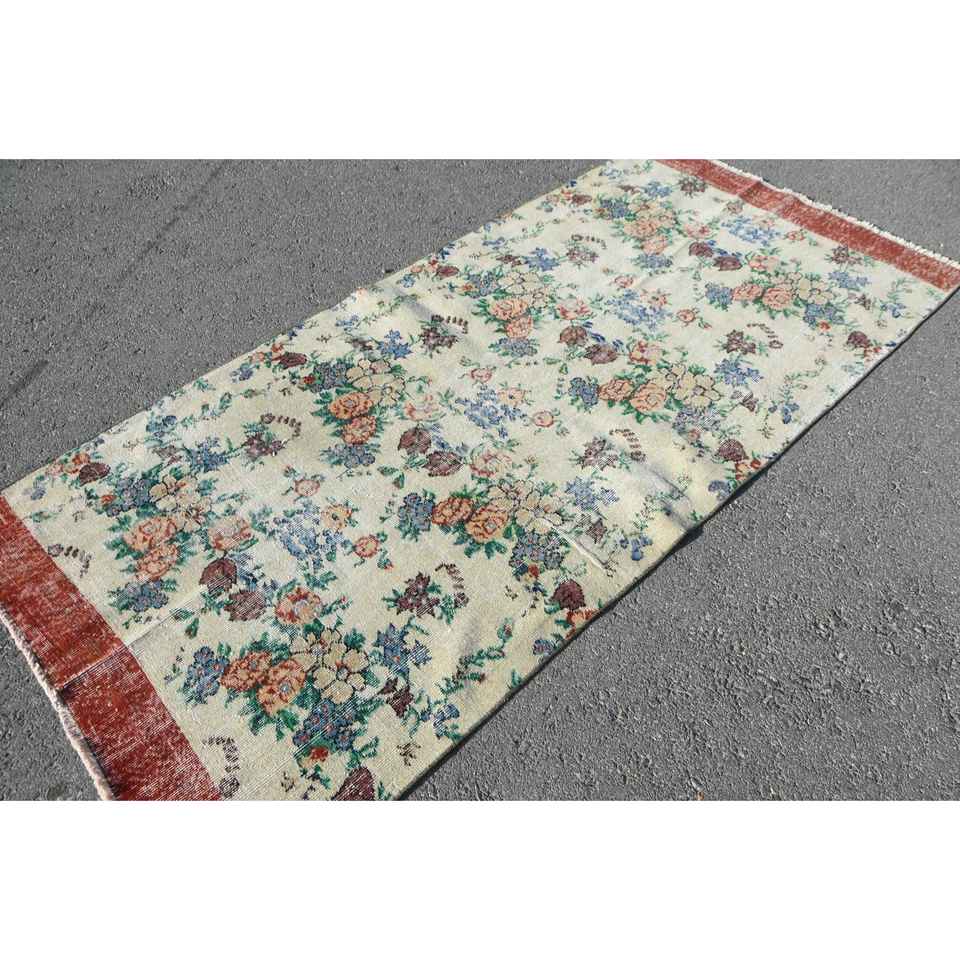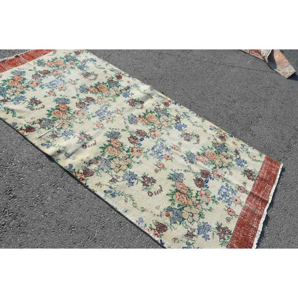 พรมวินเทจขนาด 3.7x7.9 ฟุต ลายต้นไม้และพืชสีแดง พรมตุรกีทำจากขนสัตว์