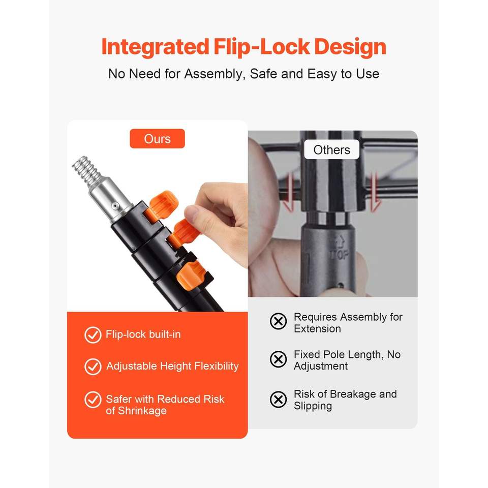 เสาต่อขยายแบบยืดหดได้ 3.8-12 ฟุต อุปกรณ์ทำความสะอาดและทาสีอเนกประสงค์