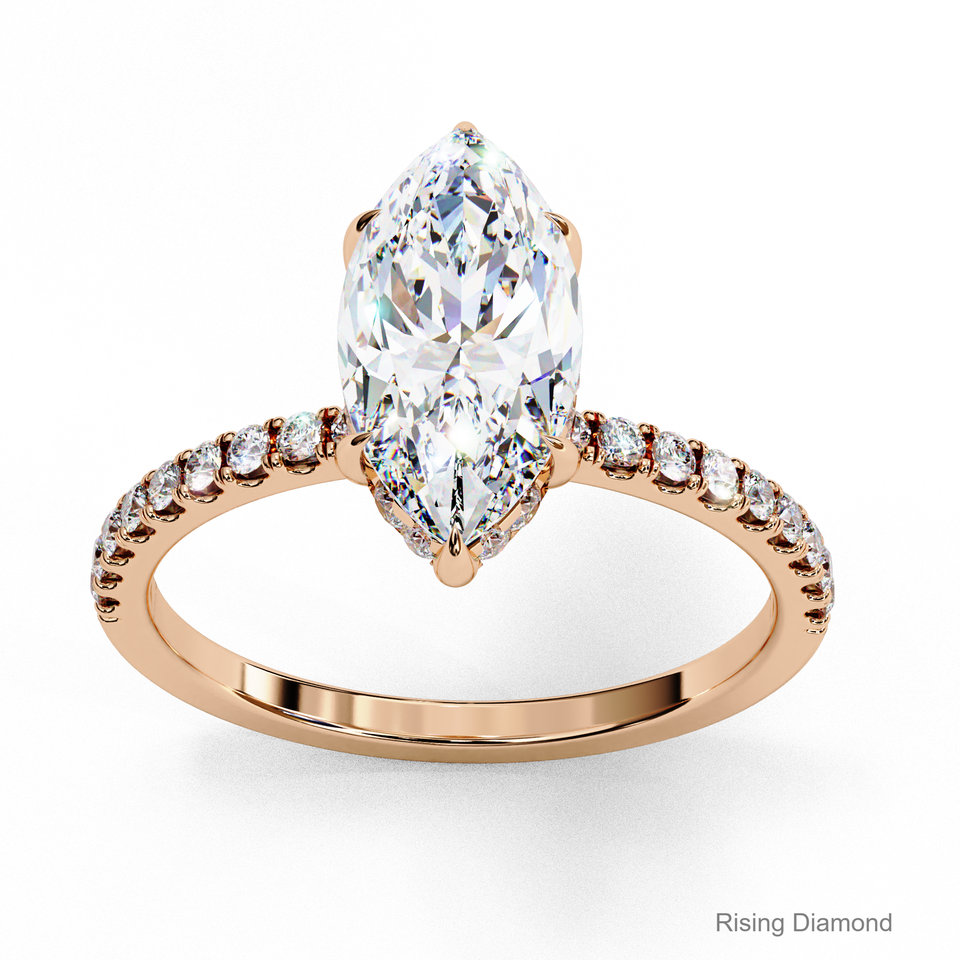 3.8 CT Marquise แหวนหมั้นเพชรที่โตแล้วพร้อมแหวนเพชร CVD สีเหลืองทองที่ซ่อนอยู่ของขวัญครบรอบสำหรับเธอ