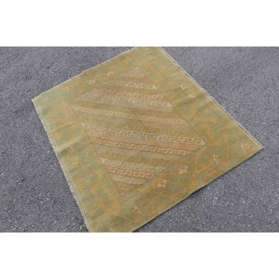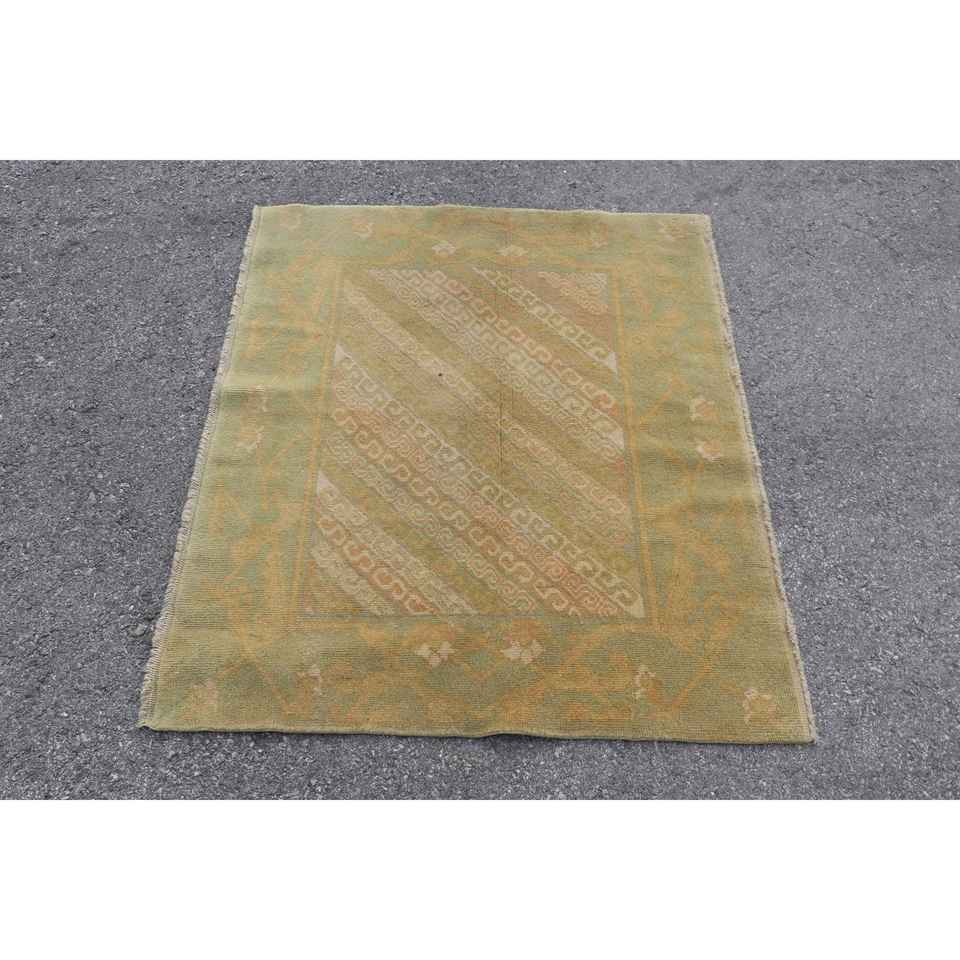 พรมขนาด 3.8x3.2 ฟุต พรมวินเทจขนาดเล็ก พรมลายดอกไม้สีเขียว
