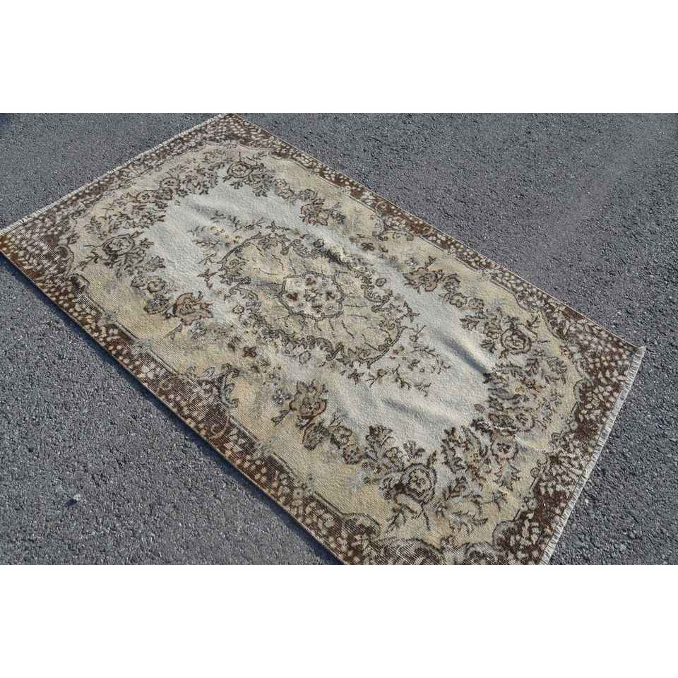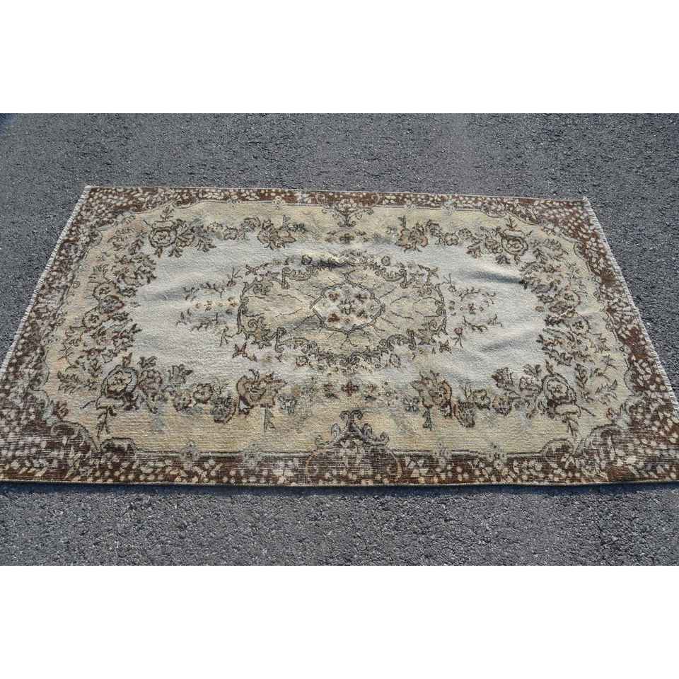 พรมขนาด 3.8x6.6 ฟุต, พรมวินเทจสไตล์ตุรกี, พรมขนสัตว์สีเบจ