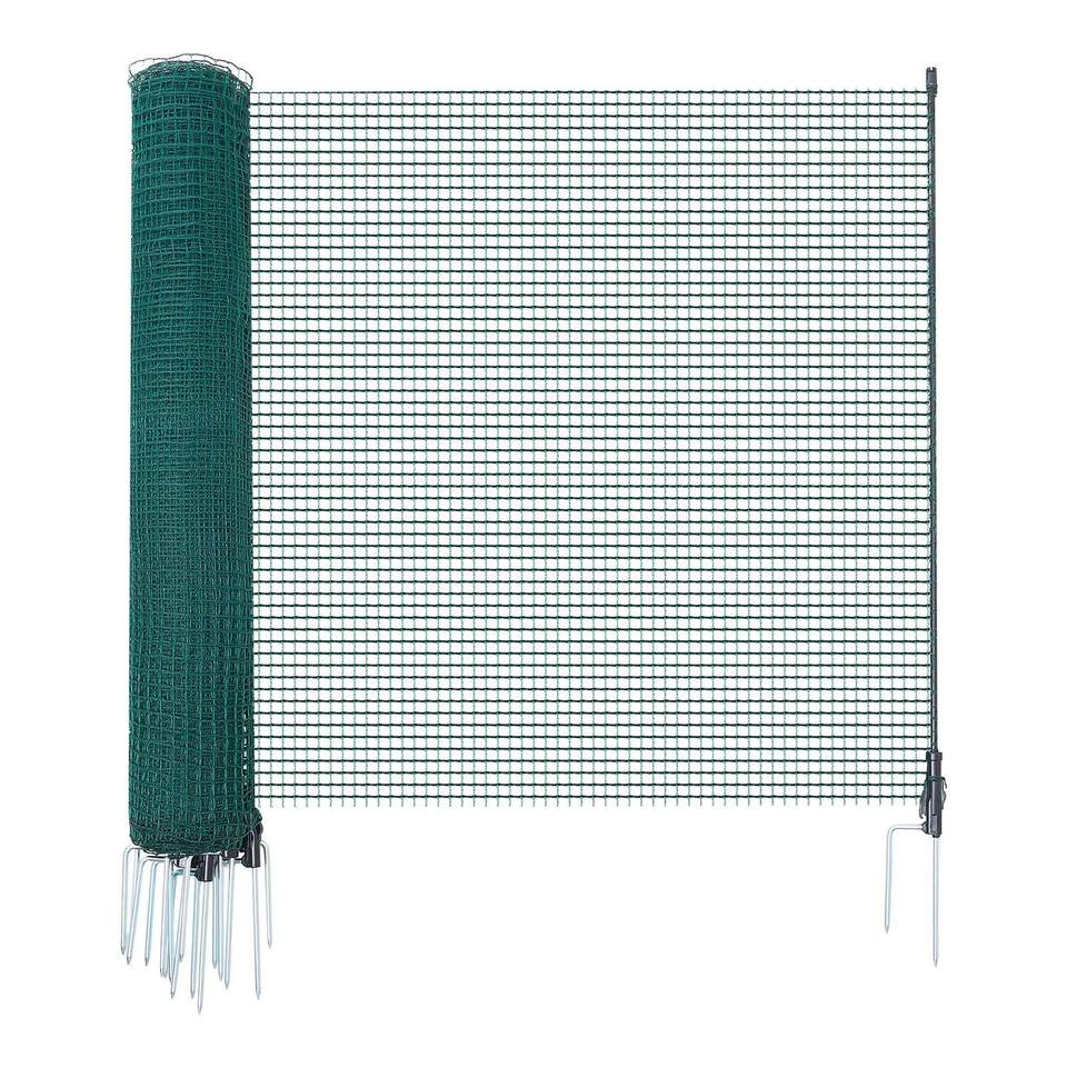ตาข่ายนิรภัยสำหรับสวนขนาด 3.9 x 49.2 ฟุต รั้วชั่วคราวพร้อมเสาและเสาปักสองง่าม ตาข่ายพลาสติกสำหรับรั้วแบบ Guy R