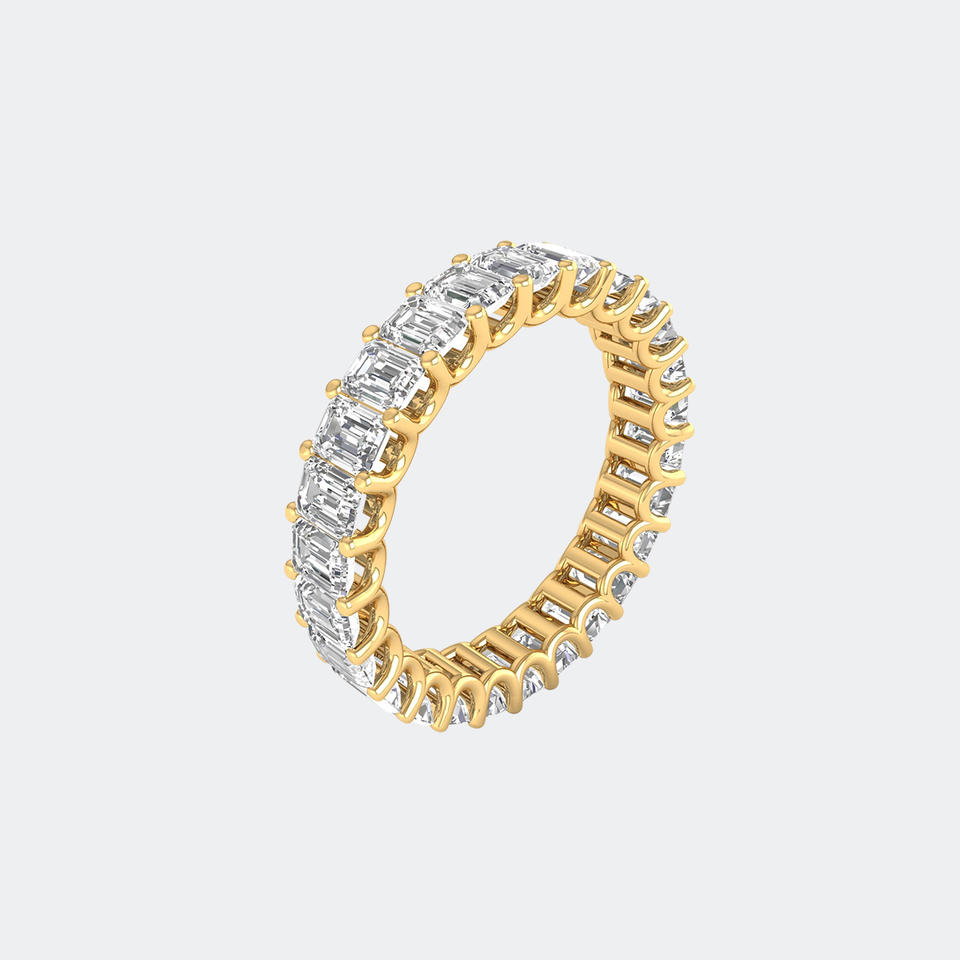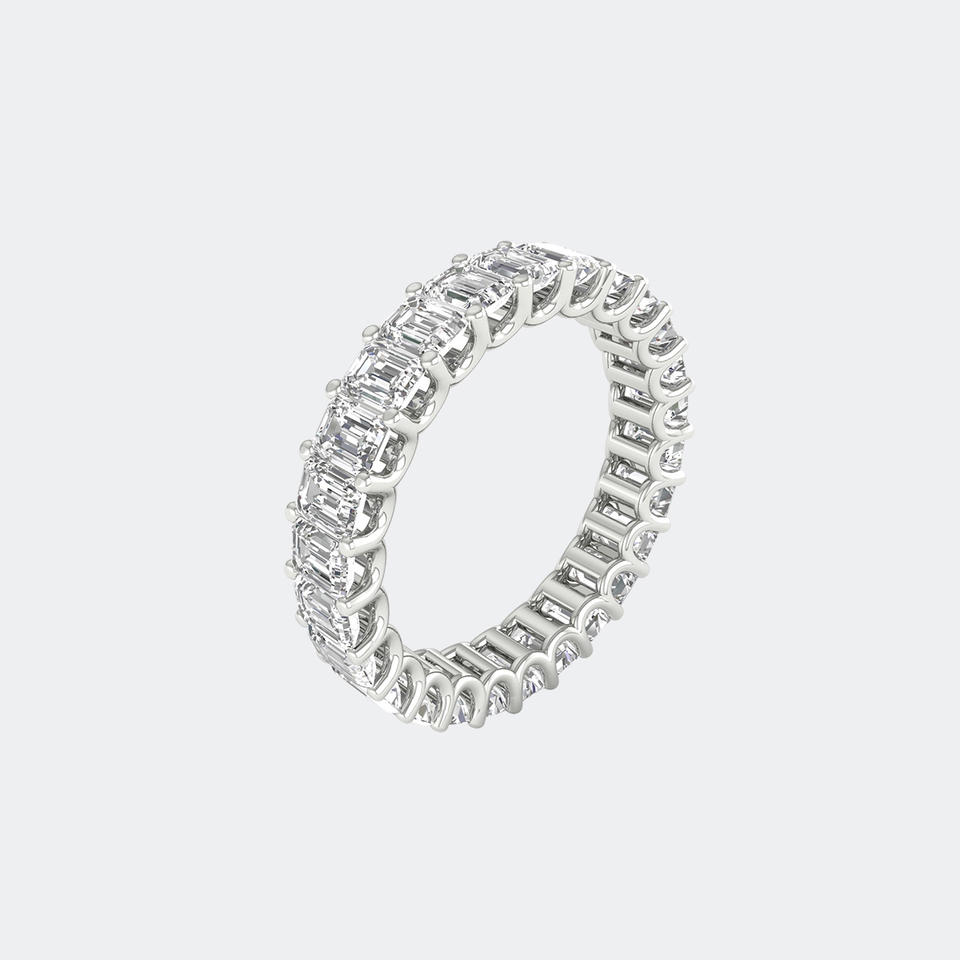 แหวนเพชรทรงเหลี่ยมมรกต 3.90 กะรัต ประดับเพชรเต็มวง แหวนเพชรเพาะเลี้ยง สี E F ความสะอาด VVS2 ทองคำขาว ทองคำโรสโกลด์ เครื่องประดับผู้หญิง อินเดีย