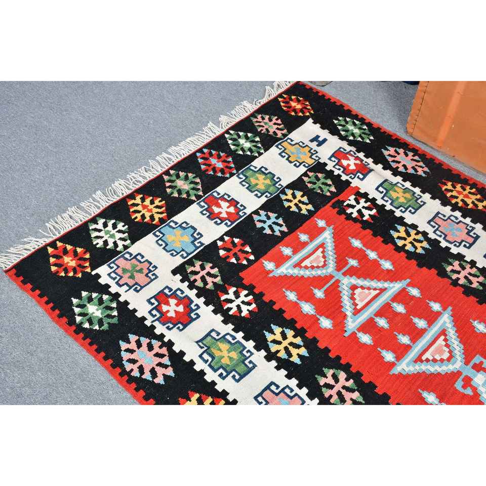 พรมตุรกีวินเทจขนาด 3.9x5.5 ฟุต พรมตกแต่งลายจุดสีดำ