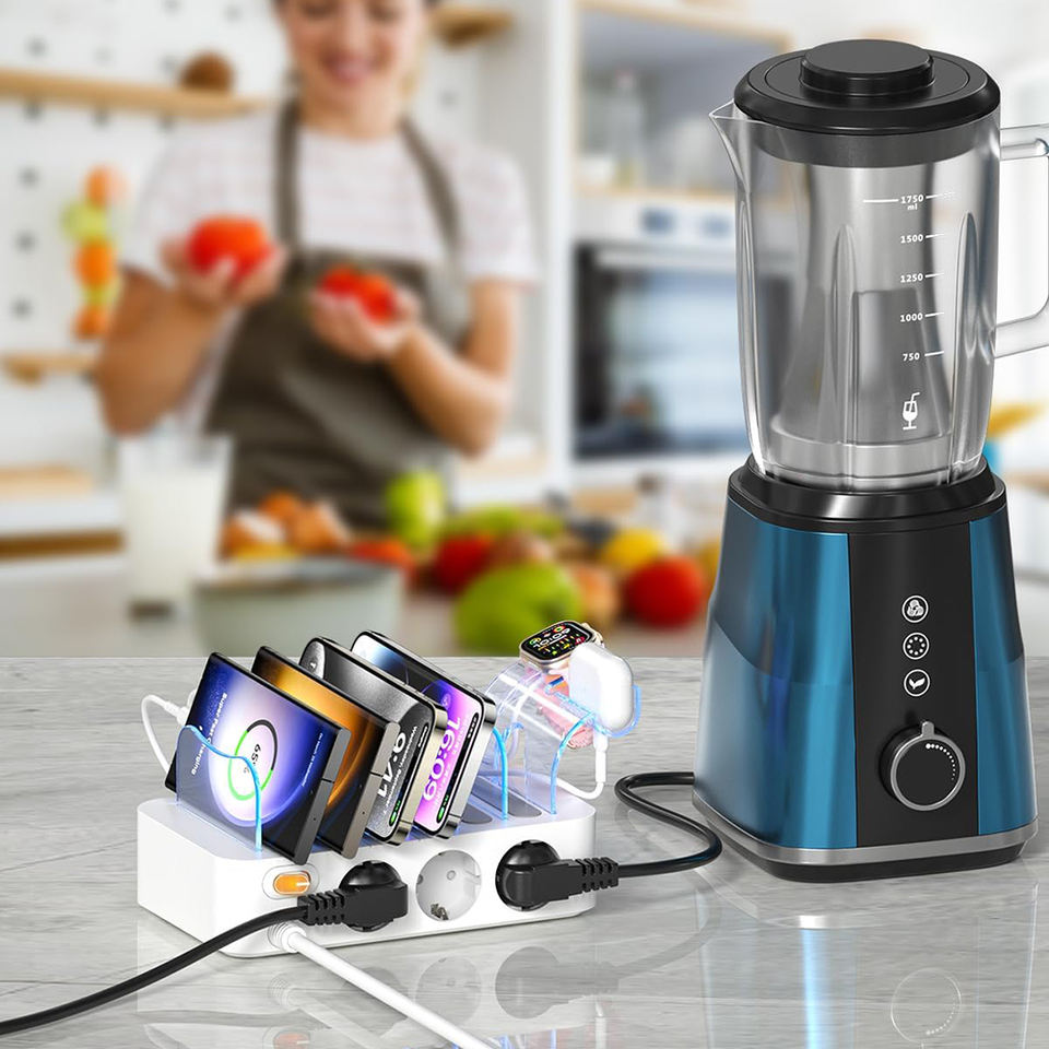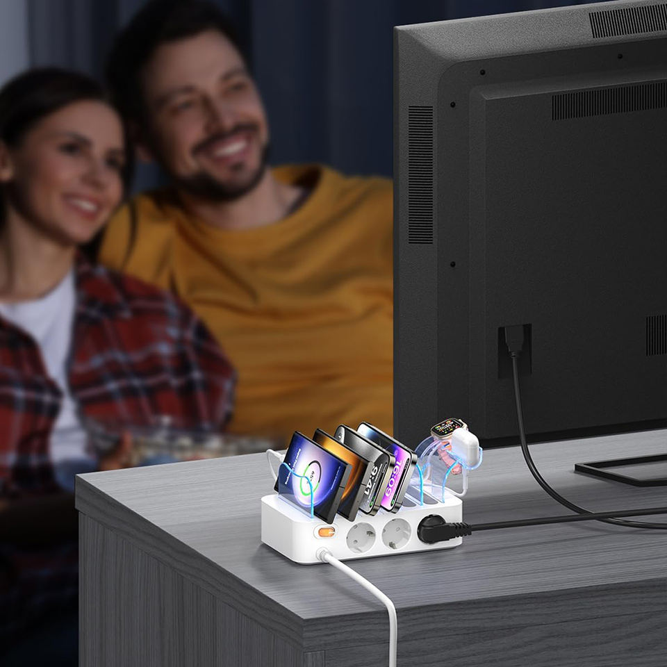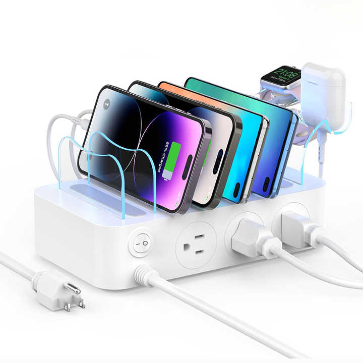 แท่นชาร์จ3พอร์ต AC แบบตั้งโต๊ะแท่นวางสำหรับสมาร์ทโฟน6พอร์ต USB สำหรับอุปกรณ์หลายชิ้น