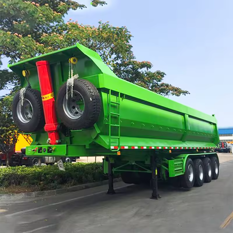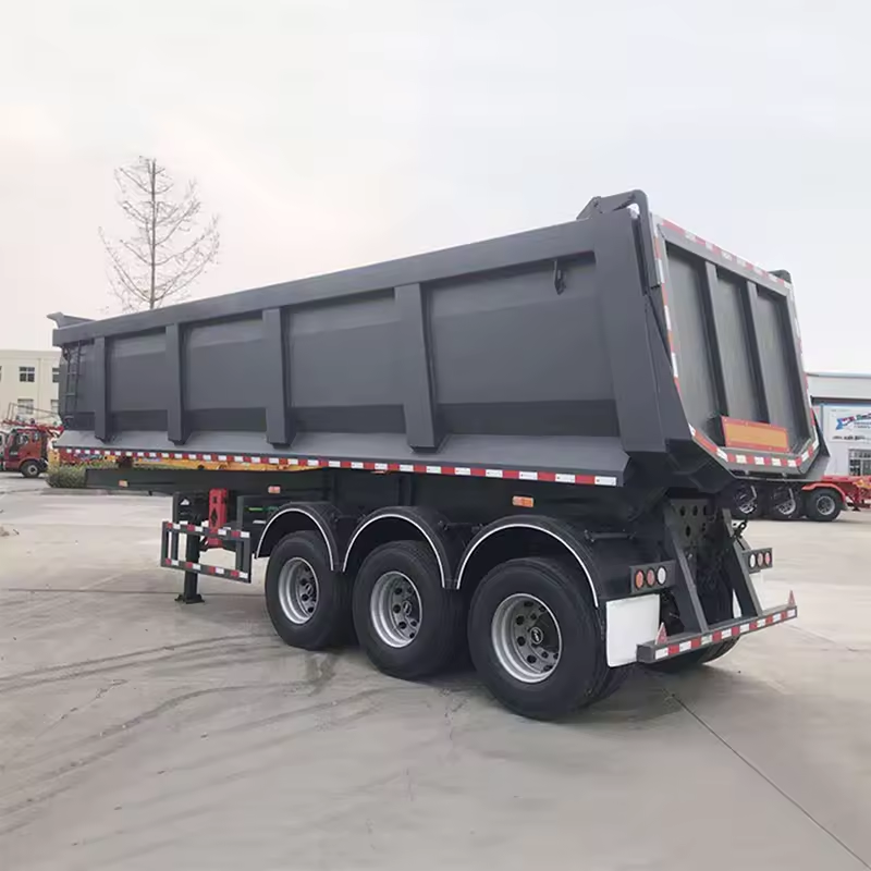 รถกึ่งพ่วงแบบเทท้าย 3 แกน 60 ตัน พร้อมระบบยกไฮดรอลิก