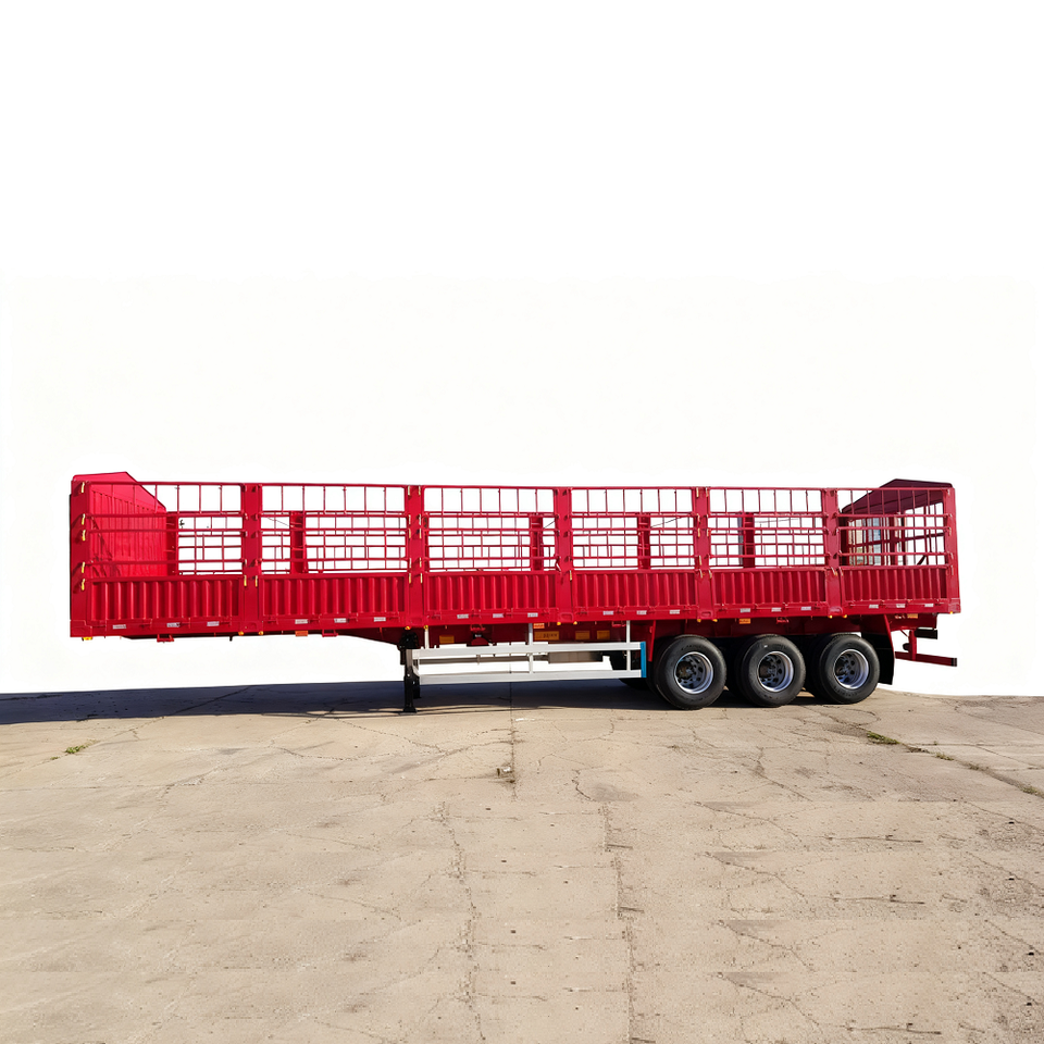 รถพ่วงกึ่งพ่วงแบบมีรั้วเหล็ก 3 เพลา 4 เพลา สำหรับบรรทุกสินค้า ขนาด 12r22.5
