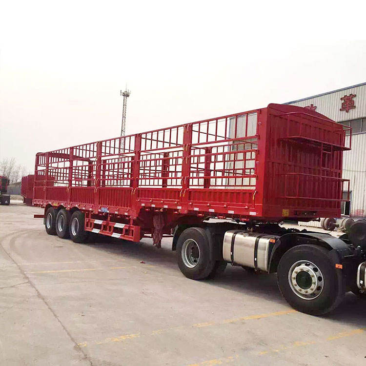 รถพ่วงพื้นเรียบแบบ 3 เพลา สำหรับบรรทุกสินค้าแบบมีรั้วเหล็ก ขนาด 12r22.5