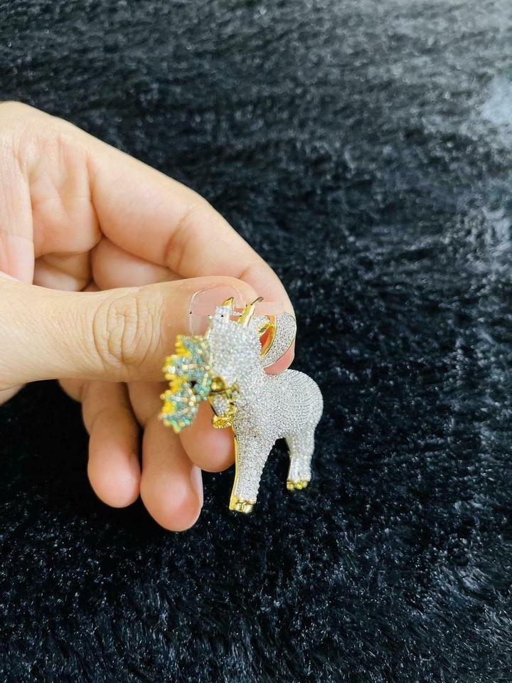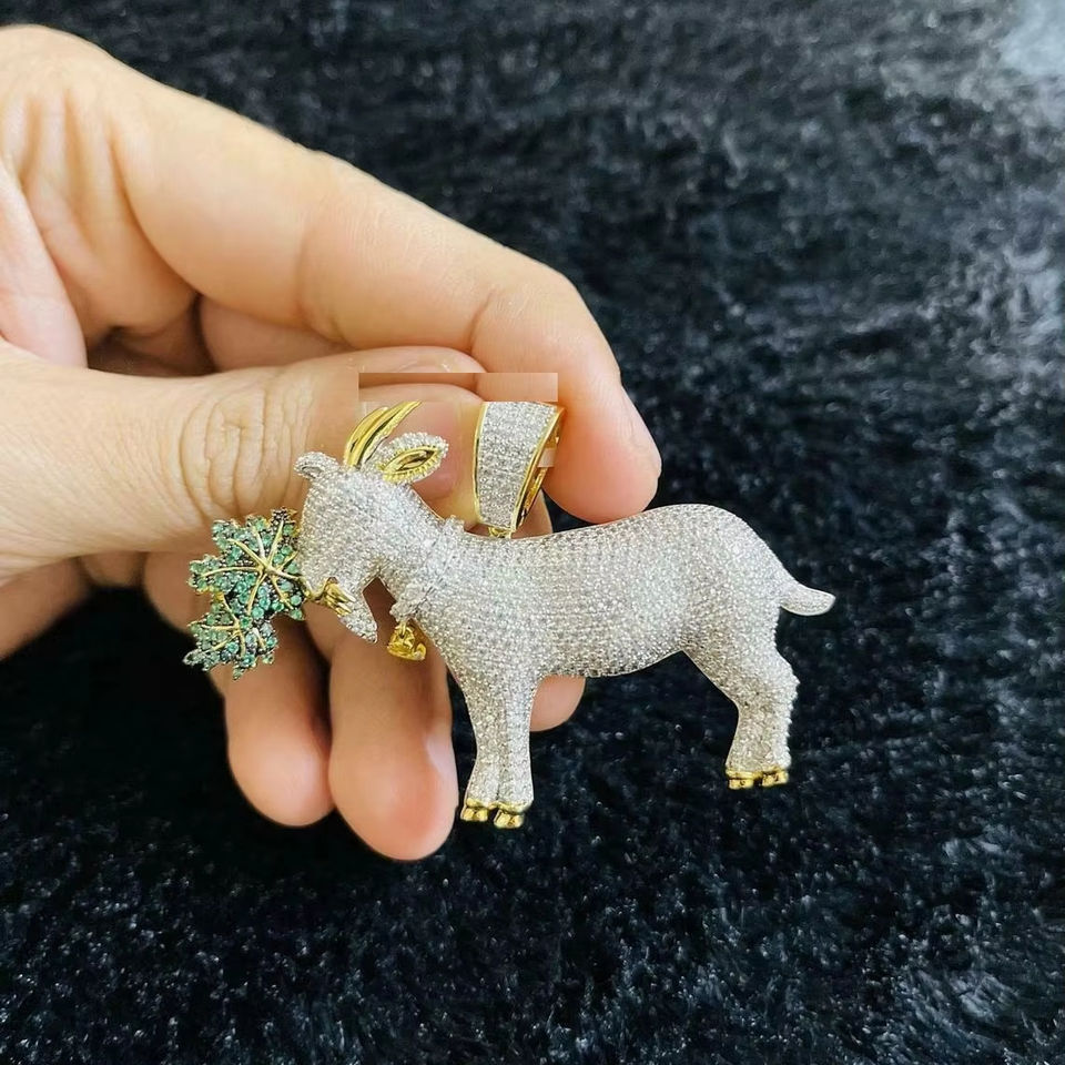 จี้รูปแพะกินใบไม้สไตล์ฮิปฮอปประดับเพชรโมอิสซาไนต์ทรงปรินเซสคัท 3 กะรัต ชุบทอง