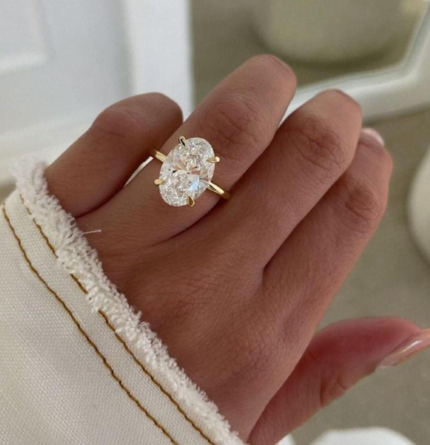 แหวนแต่งงานชุบทอง18K ประดับเพชรรูปวงรี3 CT สำหรับผู้หญิง
