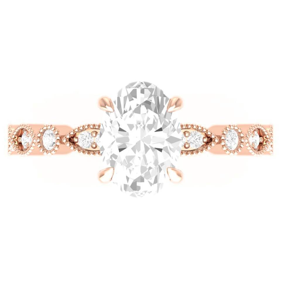 แหวนหมั้นเพชรทรงรี 2 กะรัต สำหรับผู้หญิง ดีไซน์หรูหรา ผลิตจากเพชรเลี้ยงในห้องปฏิบัติการ พร้อมทอง 14K รับรองโดย IGI เหมาะสำหรับงานแต่งงานและงานเลี้ยง