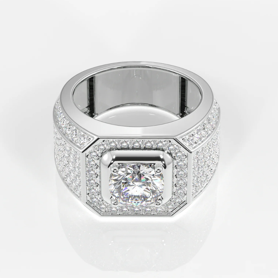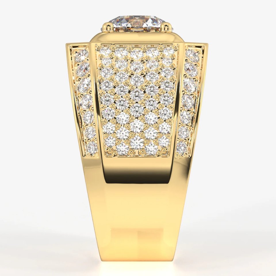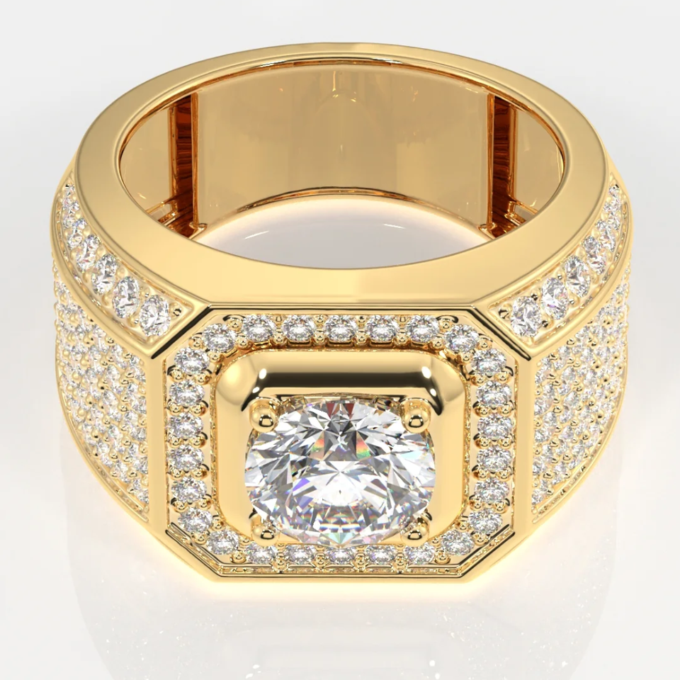 ง่ามติดเพชรทรงกลม3กะรัตตกแต่งด้วยแถบเน้นด้านข้างสำหรับงานแต่งงานวง VVS ความชัดเจนสีทอง14K สำหรับผู้ชาย