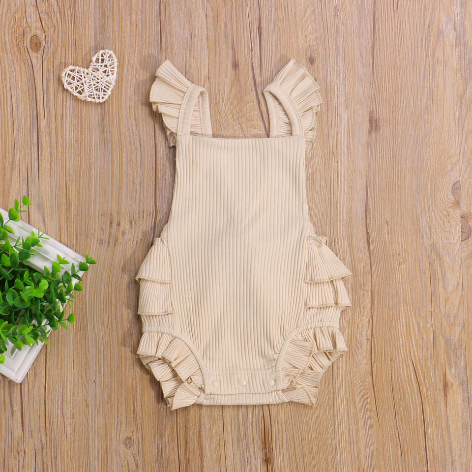 ชุดรอมเปอร์เด็กทารกหญิงชาย 3 สี ขนาด 0-24 เดือน แขนสั้น แต่งระบาย ผ้าสีพื้น เปิดหลัง