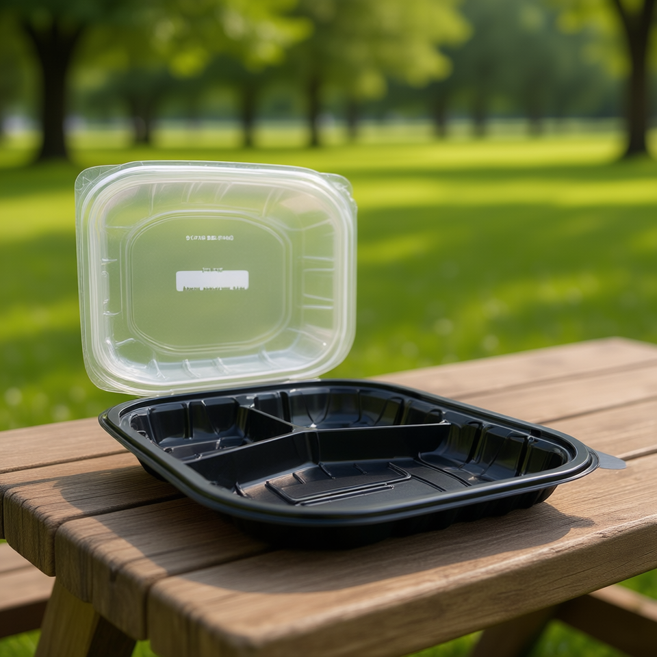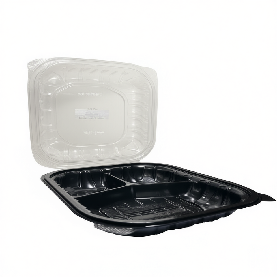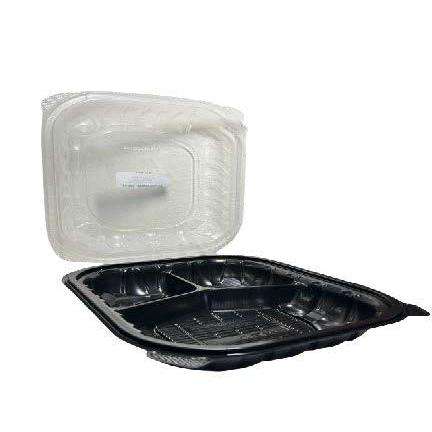 กล่องอาหารกลางวันแบบใสและสีดำ 3 ช่อง ขนาด 9 นิ้ว x 9 นิ้ว กล่องใส่อาหารแบบใสและสีดำ 3 ช่อง