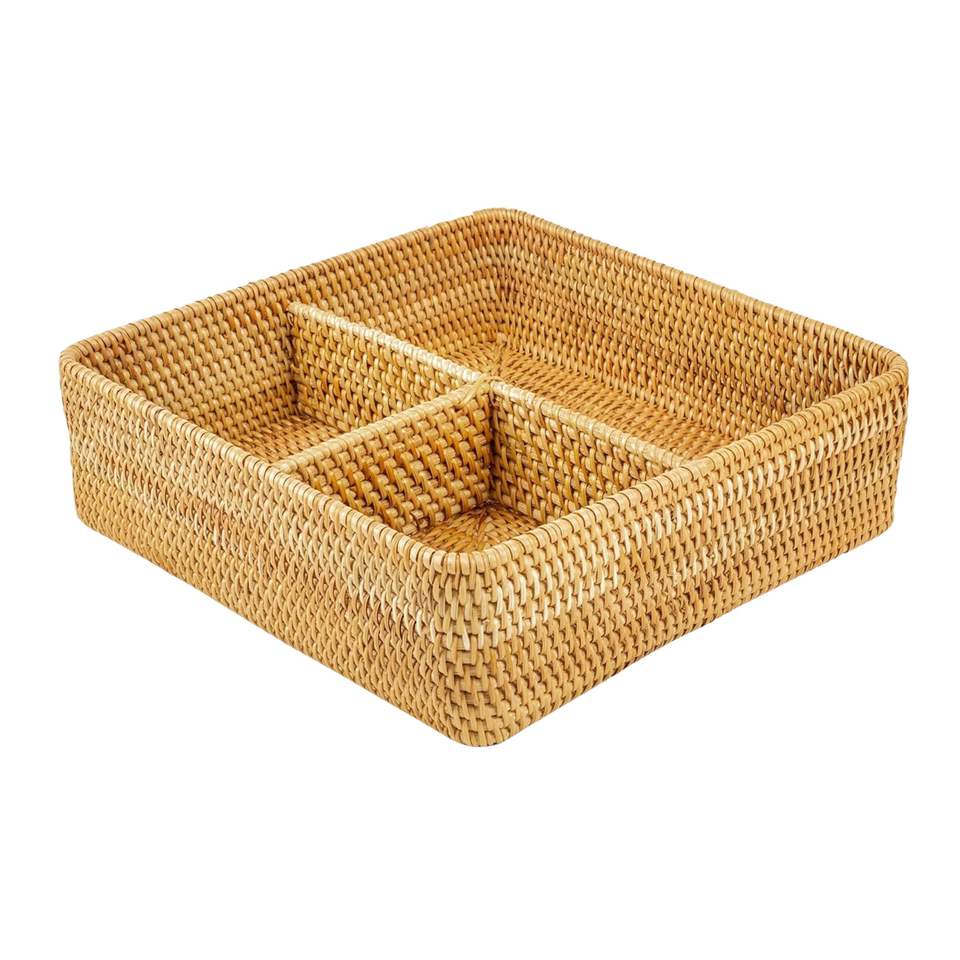 ตะกร้าหวายหวาย3ช่องแบ่งสี่เหลี่ยมสีน้ำตาลสำหรับจัดระเบียบสำหรับเก็บกระดาษชำระ