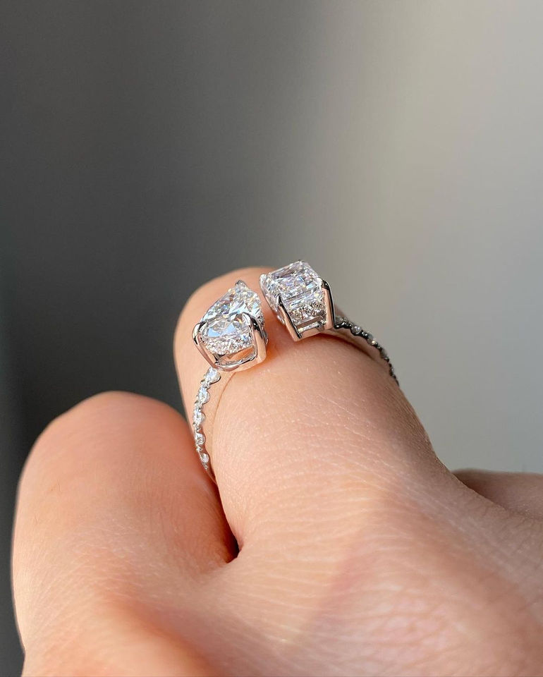 3 CT มรกตตัด Moissanite แหวนหมั้นทอง10K