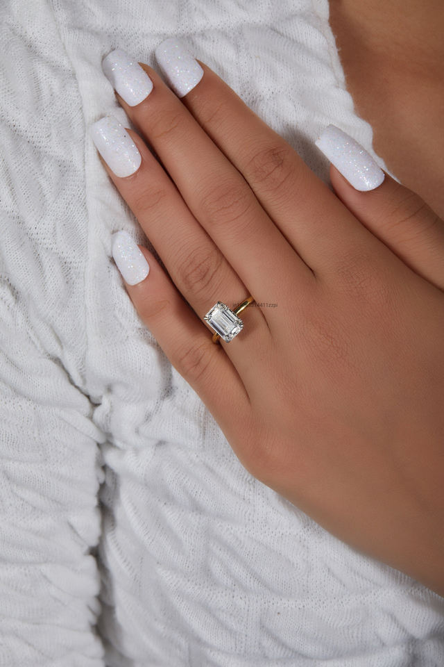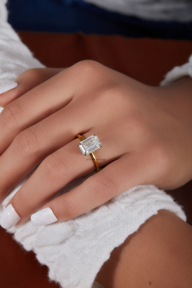 แหวนพลอยสีเงินสเตอร์ลิงรูป925 3 CT ซ่อนรัศมีมรกตตัดเพชรโมอิสซาไนต์ประกายเพชรแหวนหมั้น