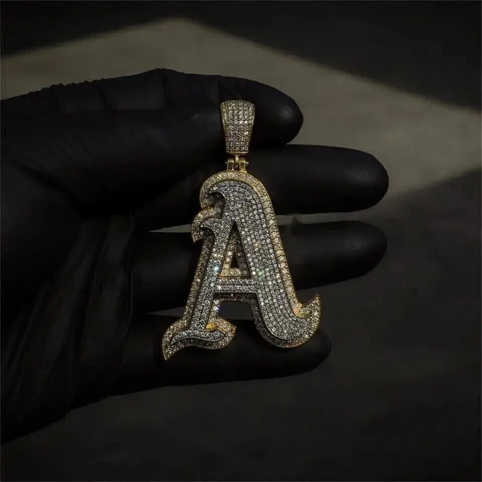 3 Ct Round Cut Real Moissanite Custom Any Letter Sterling Silver Women's Charm Pendant Gold Plated