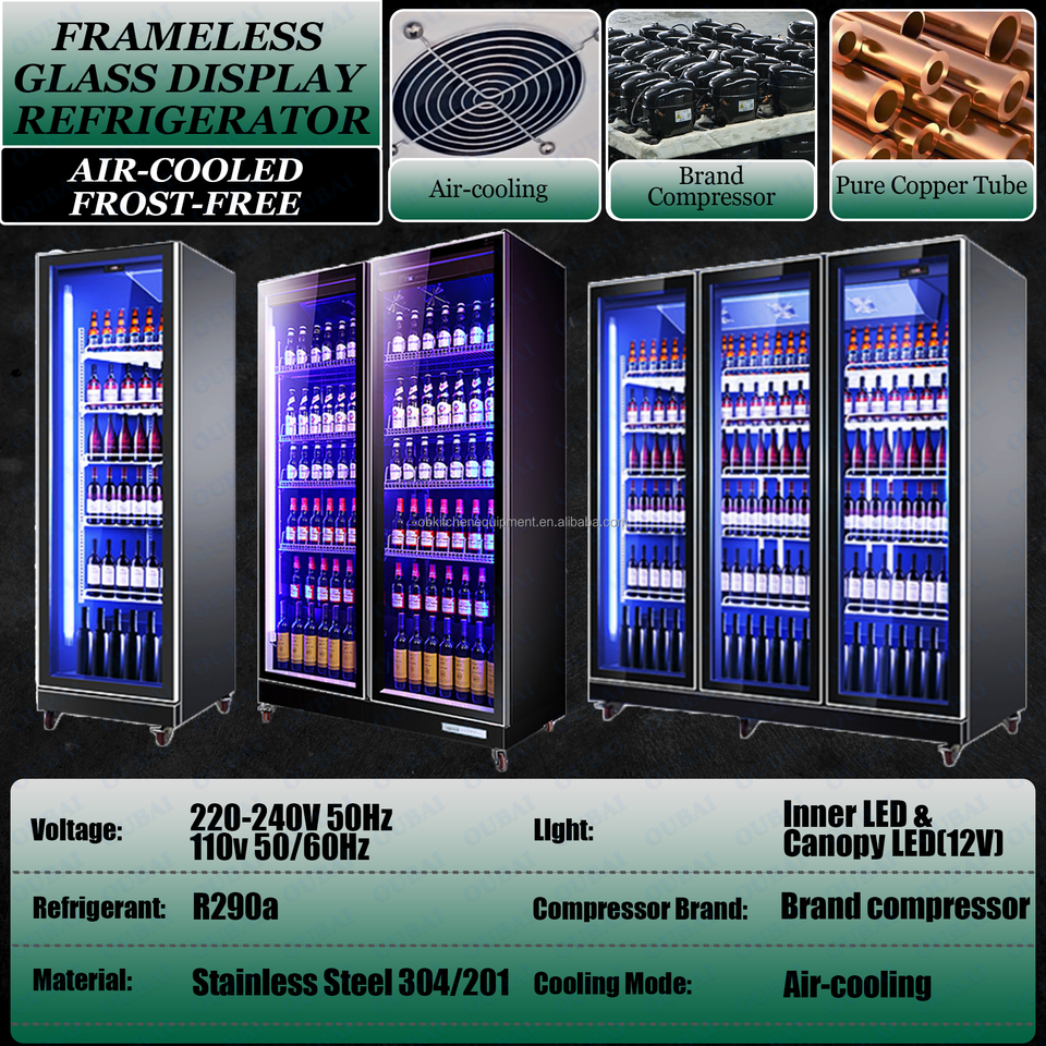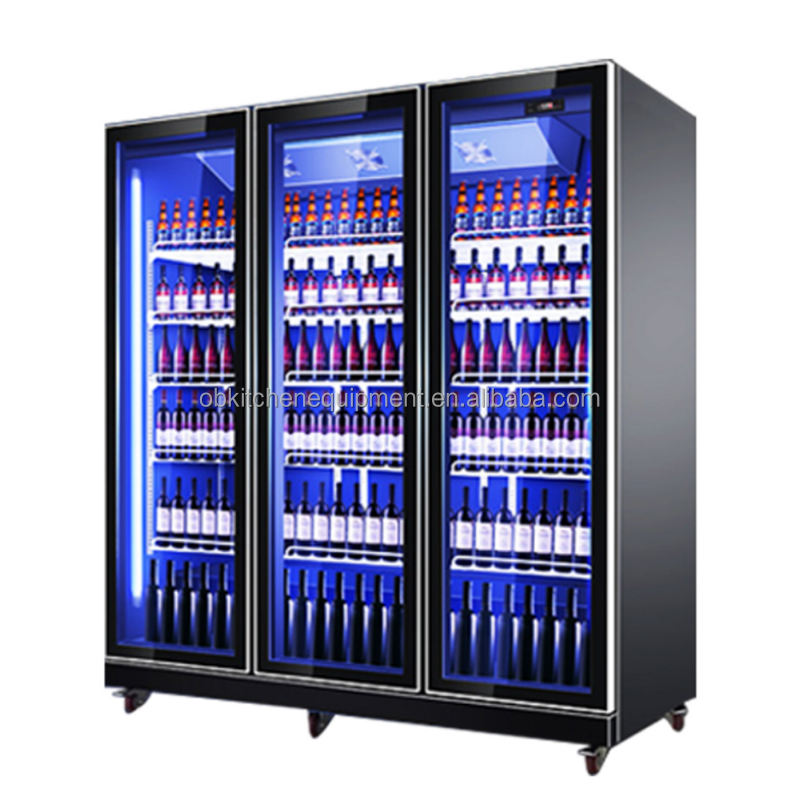 ตู้แช่เครื่องดื่มแบบตั้งตรง 3 ประตู พร้อมระบบทำความเย็นและไฟ LED