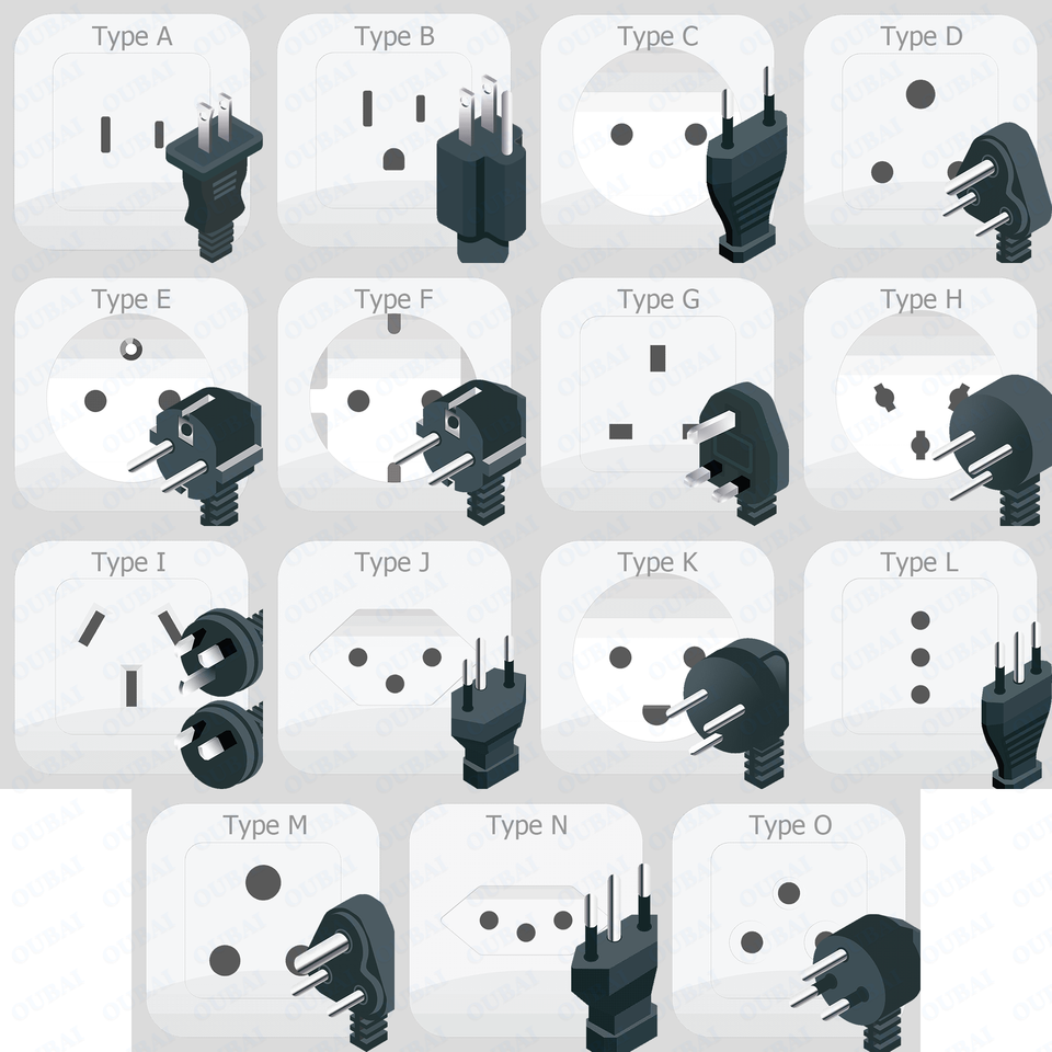 ประเภทปลั๊ก:ปลั๊กออสเตรเลีย, ปลั๊กอังกฤษ, ปลั๊กยุโรป, ปลั๊กญี่ปุ่น, ปลั๊กสวิส, เราเสียบ