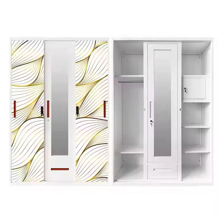 ไฟ Almirah ตู้เสื้อผ้าเหล็ก3ประตู, สำหรับเก็บเสื้อผ้าในห้องนอนอพาร์ทเมนต์เฟอร์นิเจอร์ภายในบ้าน