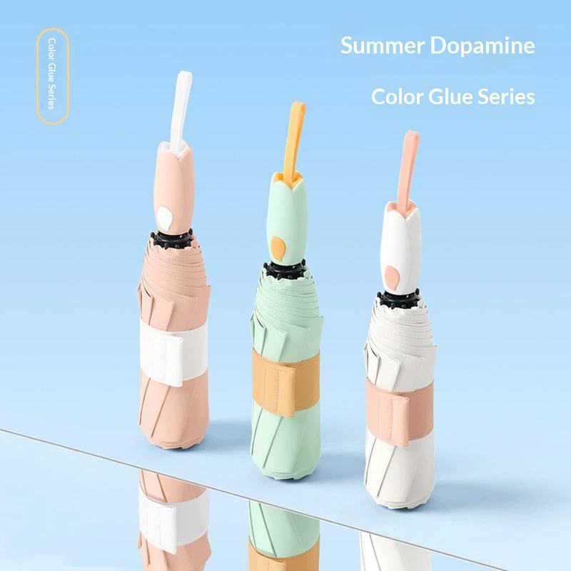 ร่มกันแดดแบบพับได้ 3 ตอน สีสันสดใส ด้ามจับลายดอกทิวลิป สำหรับผู้หญิง ใช้งานได้สองแบบ