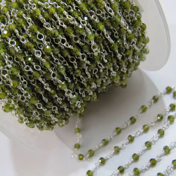 โซ่ลูกประคำประดับเพชรสังเคราะห์3ฟุตโซ่ร้อยลูกปัดคริสตัลสีเขียวมะกอกสีเขียวหินคิวบิคเซอร์โคเนีย3มม.