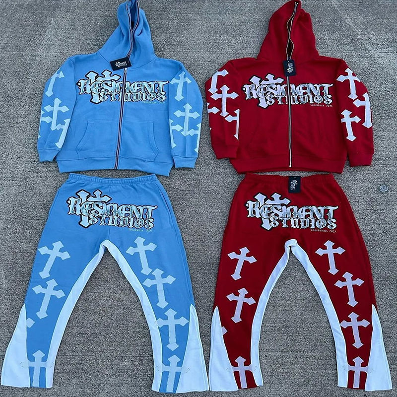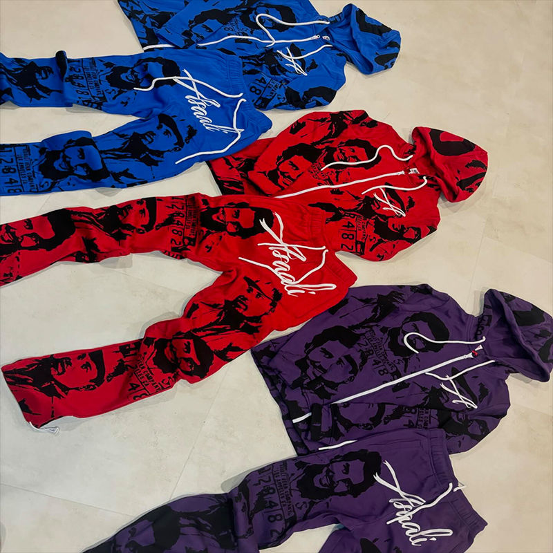 ชุดวอร์มผู้ชายแบบโอเวอร์ไซส์ ผ้าฟลีซเนื้อหนัก 3 ชั้น ทรงหลวม ไหล่ตก พร้อมเสื้อฮู้ดและกางเกงขายาว