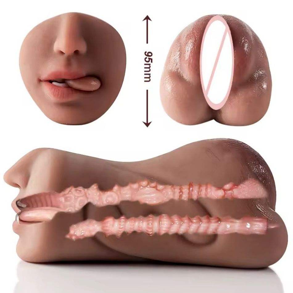 3 in 1 Silicone Ass Pocket Pussy Male Masturbators with Tight Mouth and Realistic Textured Vagina Anal Adult Sex Toys for Men