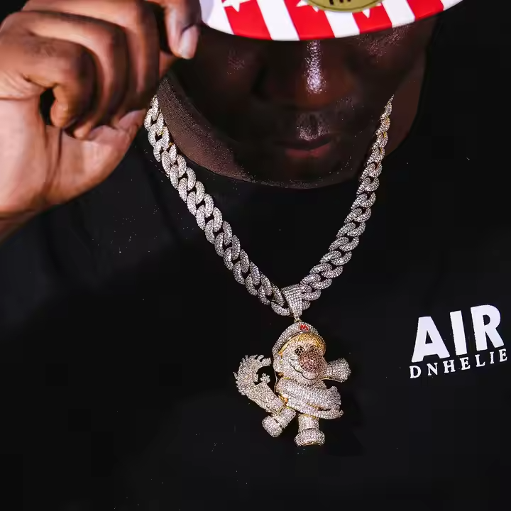 จี้สร้อยคอเงินแท้ 925 ขนาด 3 นิ้ว สไตล์ฮิปฮอปแบบ Urban ดีไซน์การ์ตูนน่ารัก ประดับเพชรโมอิสซาไนต์ แบบ Iced Out Drip ของขวัญสุดพิเศษ