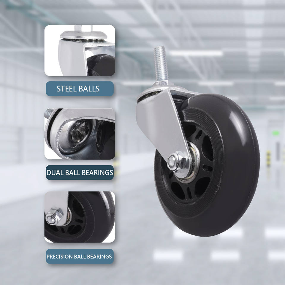 3 Inch Castor Wheel M8 X 1" Stem Swivel Casters PU Wheel
