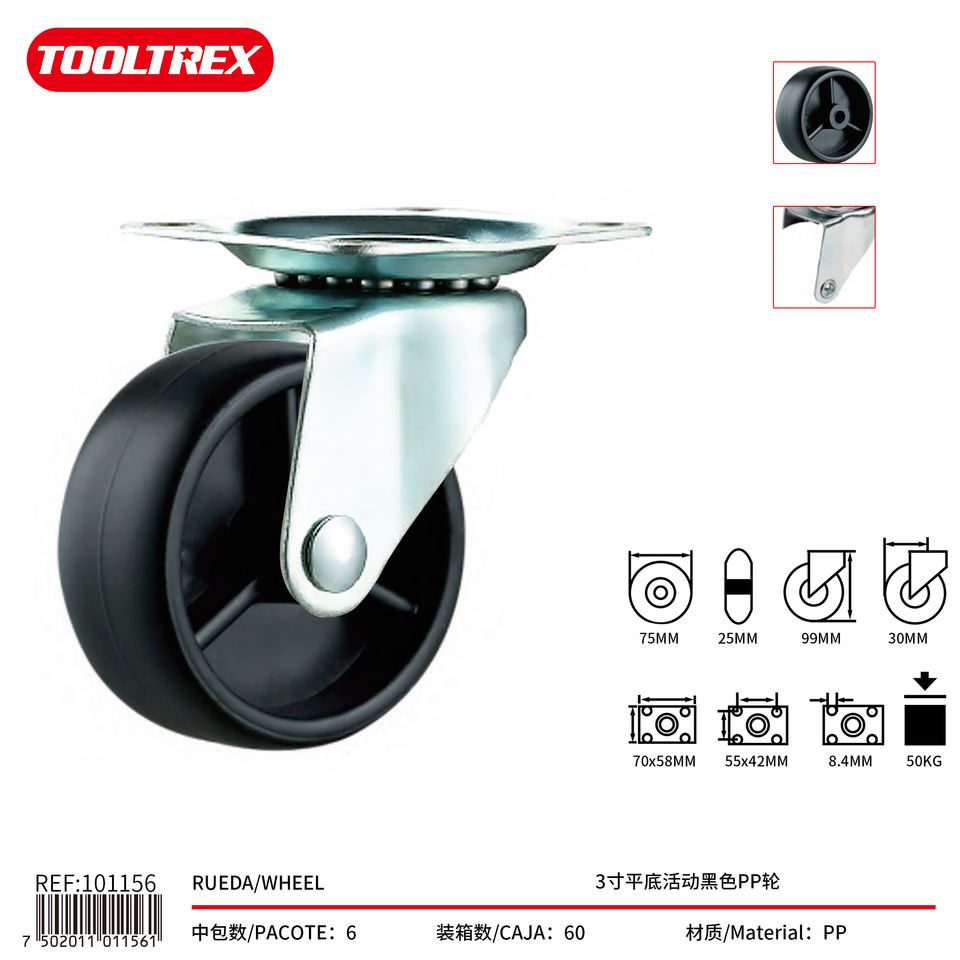 3 Inch Flat Bottom Movable Black PP Caster Outdoor Furniture Casters for Hospital Office School Made Polyurethane Nylon Plastic