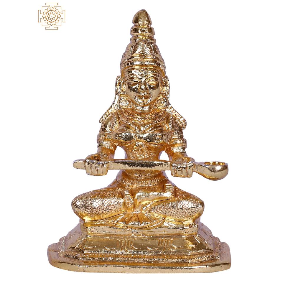 รูปปั้นทองเหลืองชุบทอง3นิ้ว-เทพธิดา Annapurna ไอดอลนั่งอยู่บนบัลลังก์