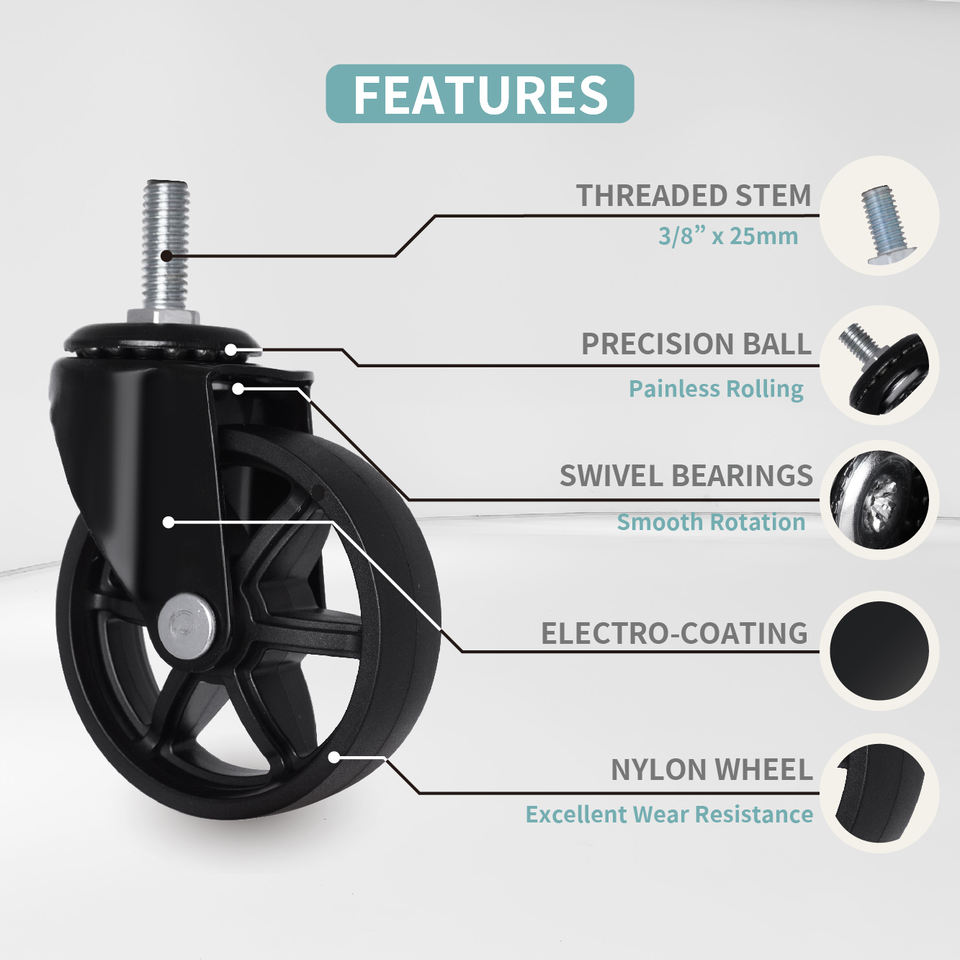 Product Name:3 inch Nylon Wheel Caster with 3/8" Threaded Stem
