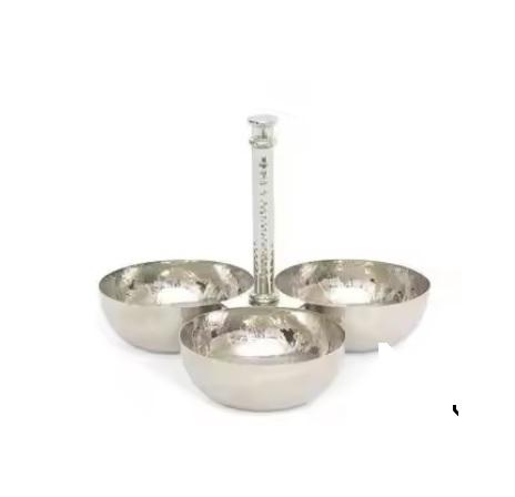 ชามเสิร์ฟสลัดแบบพรีเมี่ยมชุด3ชิ้นทำจากโลหะสำหรับร้านอาหารโรงแรมโต๊ะแต่งงานชามเสิร์ฟผลไม้พร้อมขาตั้งต้นปาล์ม