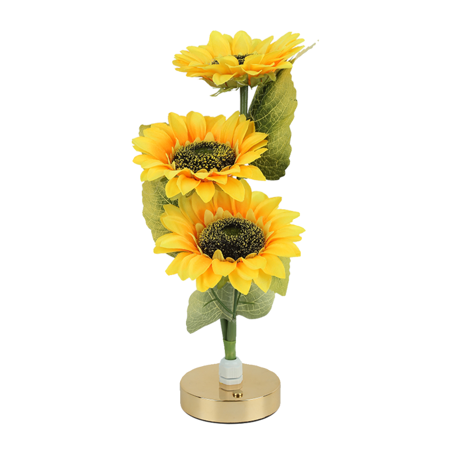 ไฟกลางคืน LED 3 ดวง แบบชาร์จไฟได้ รูปทรงดอกทานตะวัน สำหรับตกแต่งภายในห้องนอน ข้างเตียง โต๊ะทำงาน โคมไฟตั้งโต๊ะ