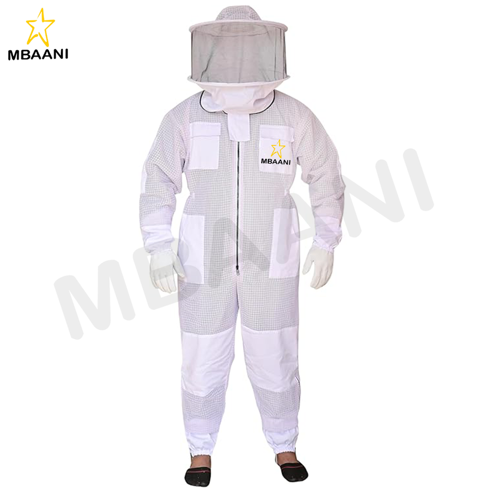 ชุดผึ้ง3ชั้นพร้อมผ้าคลุมหน้ากลมและถุงมือ1คู่ชุดป้องกันการเลี้ยงผึ้งระบายอากาศได้สำหรับผึ้ง