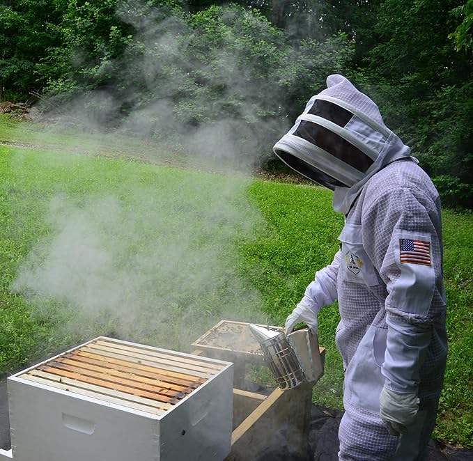 ชุดสูทผึ้ง3ชั้นพร้อมผ้าคลุมสำหรับฟันดาบหนึ่งคู่ถุงมือป้องกันการเลี้ยงผึ้งระบายอากาศได้ดี