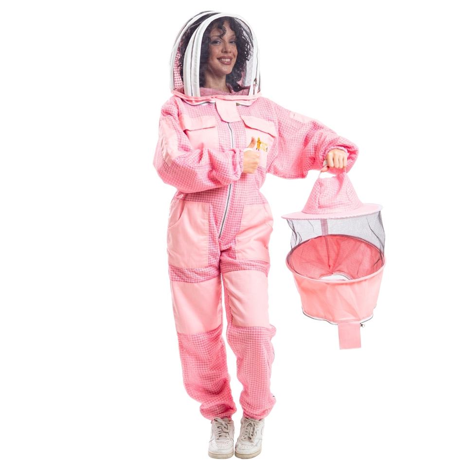 ชุดเลี้ยงผึ้งแบบตาข่าย 3 ชั้น พร้อมผ้าคลุมหน้าสองชั้น ประกอบด้วยผ้าคลุมหน้าแบบรั้วและแบบกลม ข้อมือและข้อเท้าแบบยืดหยุ่น