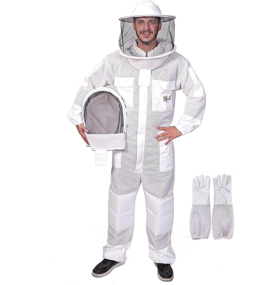3 Layer Ultra Ventilated Leather/Cotton Bee Suit for Men Women Anti-Sting Protection Heat Resistant Bee Gloves Two Detachable