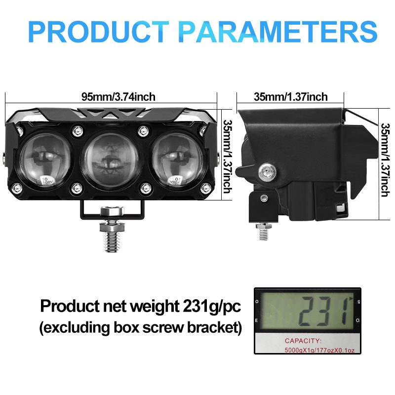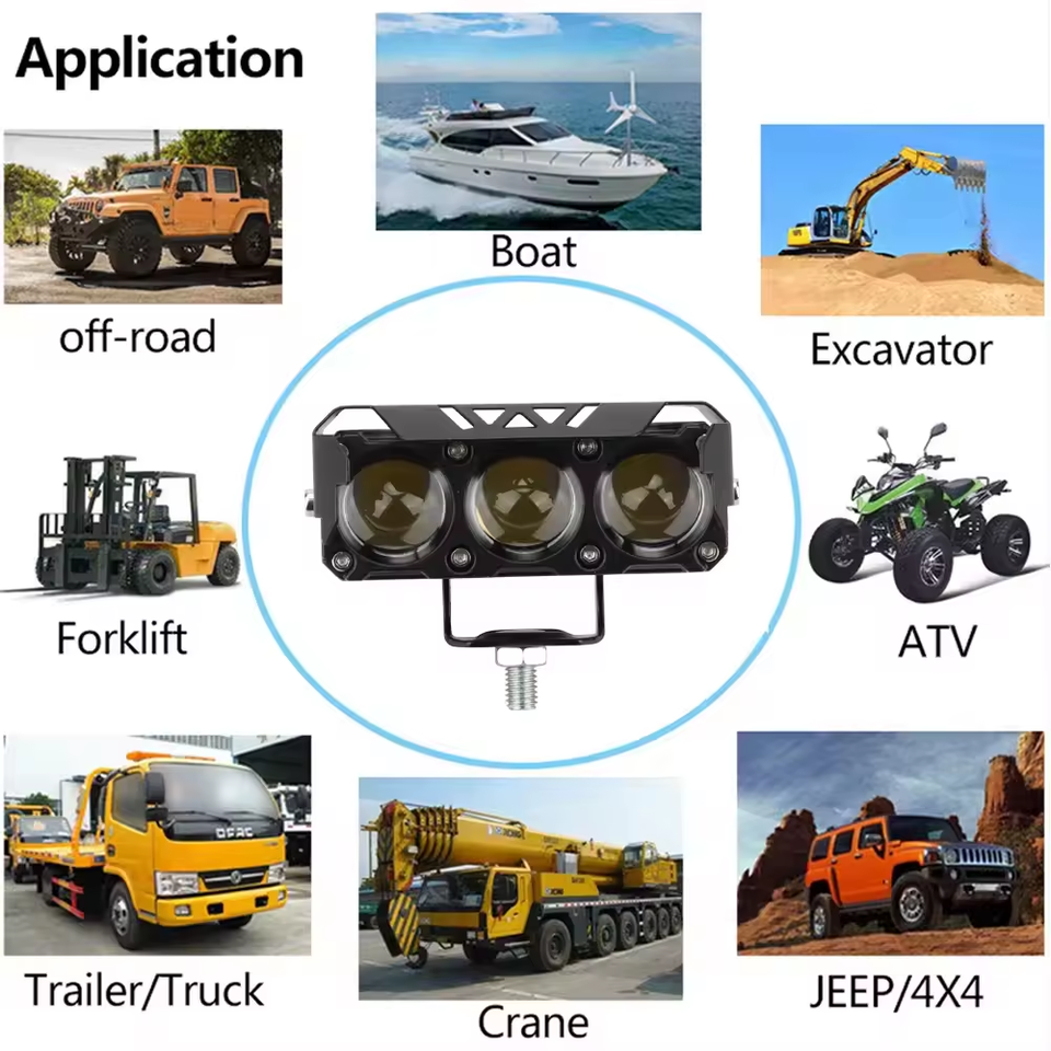 3 Lens Laser Led Projector Headlight Dual Color White Yellow Fog Driving Lamp Led Motorcycle Lights Work Light for Truck SUV ATV