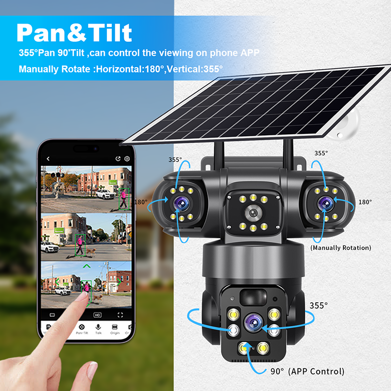 กล้องวงจรปิด3เลนส์พลังงานแสงอาทิตย์ PTZ, กล้องวงจรปิด V380เครือข่ายกันน้ำช่องใส่ซิมการ์ด4G กล้องรักษาความปลอดภัยและเสียงสองทาง