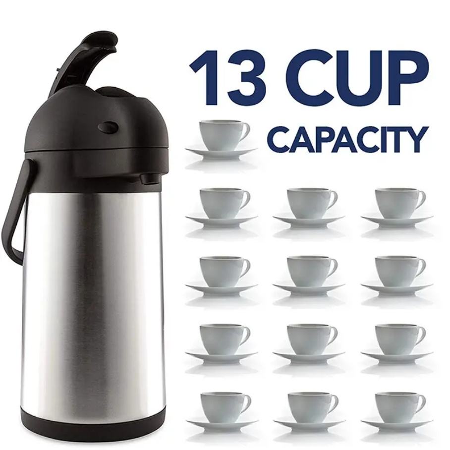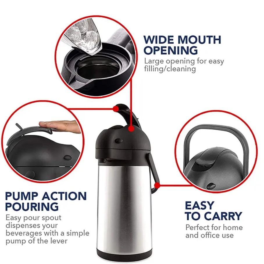 กระติกน้ำสุญญากาศสแตนเลสขนาด 3 ลิตร สำหรับชา กาแฟ ร้อนและเย็น พร้อมปั๊ม