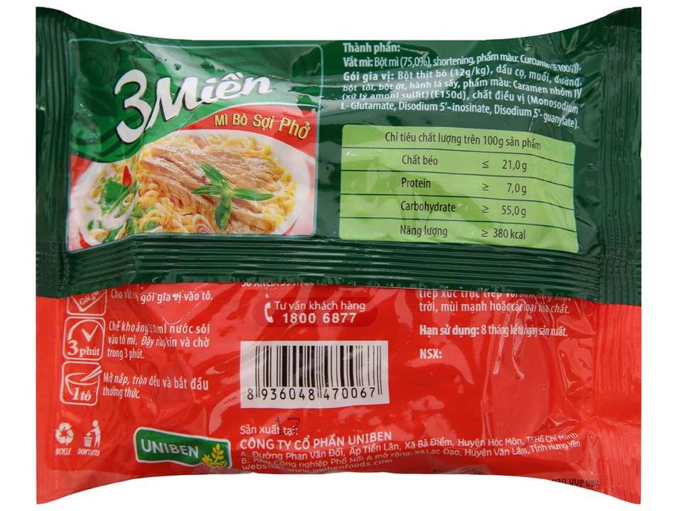 บะหมี่กึ่งสำเร็จรูป 3 มี๋ เบน บีฟ นูเดิล ซุป 75 กรัม แบบซอง บะหมี่กึ่งสำเร็จรูปคุณภาพเยี่ยมจากเวียดนาม ราคาดีที่สุด ไขมัน 2% ระยะเวลาปรุง 2-3 นาที