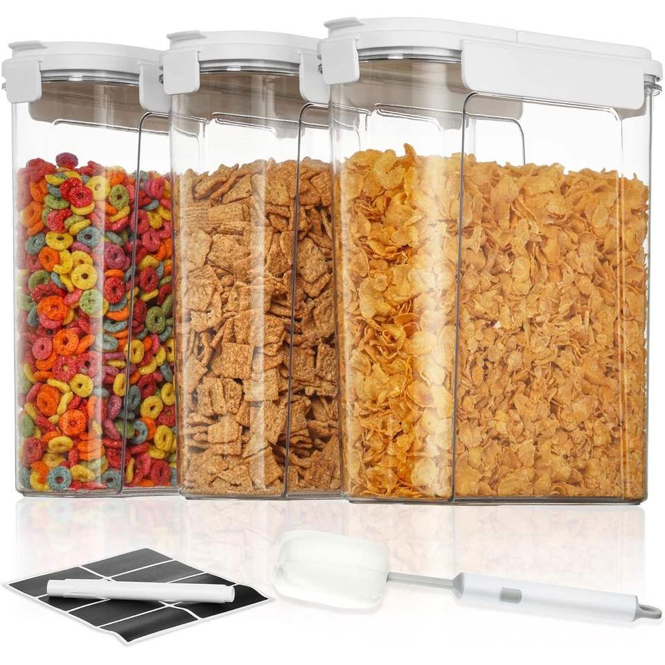กล่องเก็บอาหารพลาสติกสุญญากาศ 3 ชิ้น พร้อมฝาปิดแบบพลิก กล่องจัดระเบียบซีเรียล สำหรับห้องครัว ชุด 3 ชิ้น